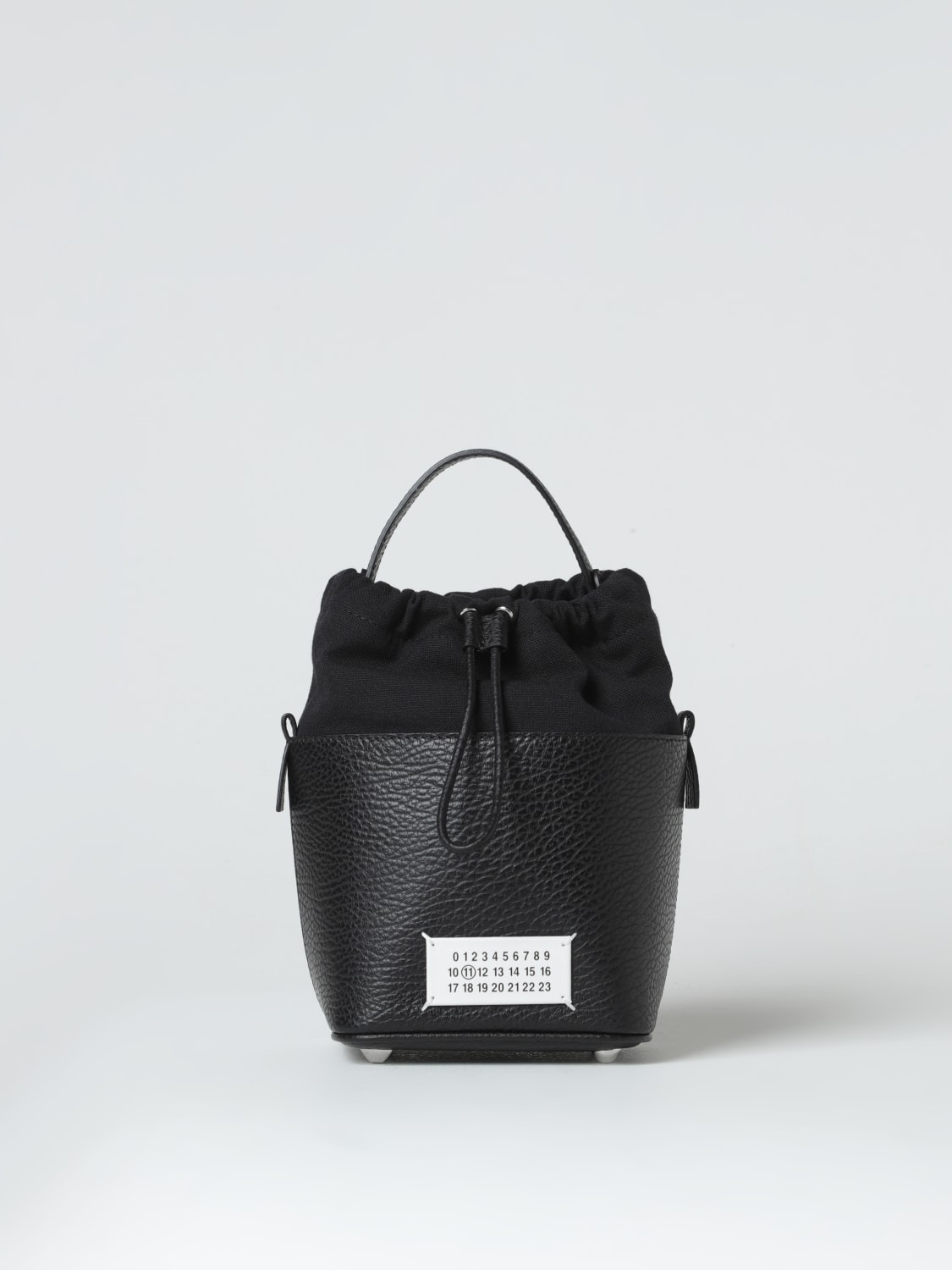 DESCRIPTION - Logo: Maison Margiela numbers, With logo - Lining: With patch pockets, With logo, Cotton - Model: Hand, Bucket - Closure: With drawstrings - Bottom: With protective feet at the bottom, Metal - Shape: Rectangular - Handle: Flat - Shoulder strap: Adjustable and removable, Metal mesh, Grained leather - Measurements: Shoulder strap length from shoulder: 61 cm - Materials: Canvas, Grained calfskin, Cotton - Pattern: All-over logo DETAILS AND CARE Composition 100% PELLE SIZE AND FIT Sizes Width : 15 cm Height: 22 cm Depth: 12 cm Handle height: 12 cm Designer code: S61WG0035P4348 T8013 Giglio Code: E45132 Designer: Maison Margiela Collection: Maison Margiela Woman Category: Bags Maison Margiela