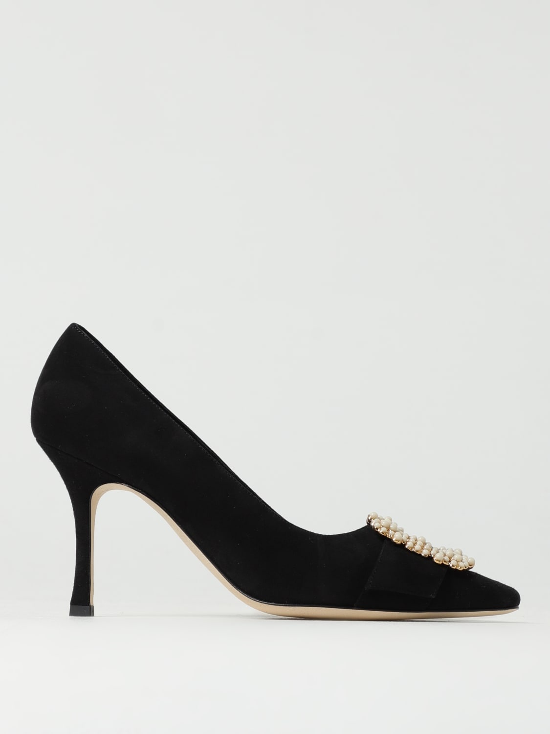 DESCRIPTION - Details: With jewel buckle - Lining: Leather, With logo - Toe: Almond - Sole: Leather - Pattern: Plain-colored DETAILS AND CARE Composition 100% Kid Suede SIZE AND FIT Sizes not available Designer code: 1252895 0015 Giglio Code: G74040 Designer: Manolo Blahnik Collection: Manolo Blahnik Woman Category: Shoes Manolo Blahnik