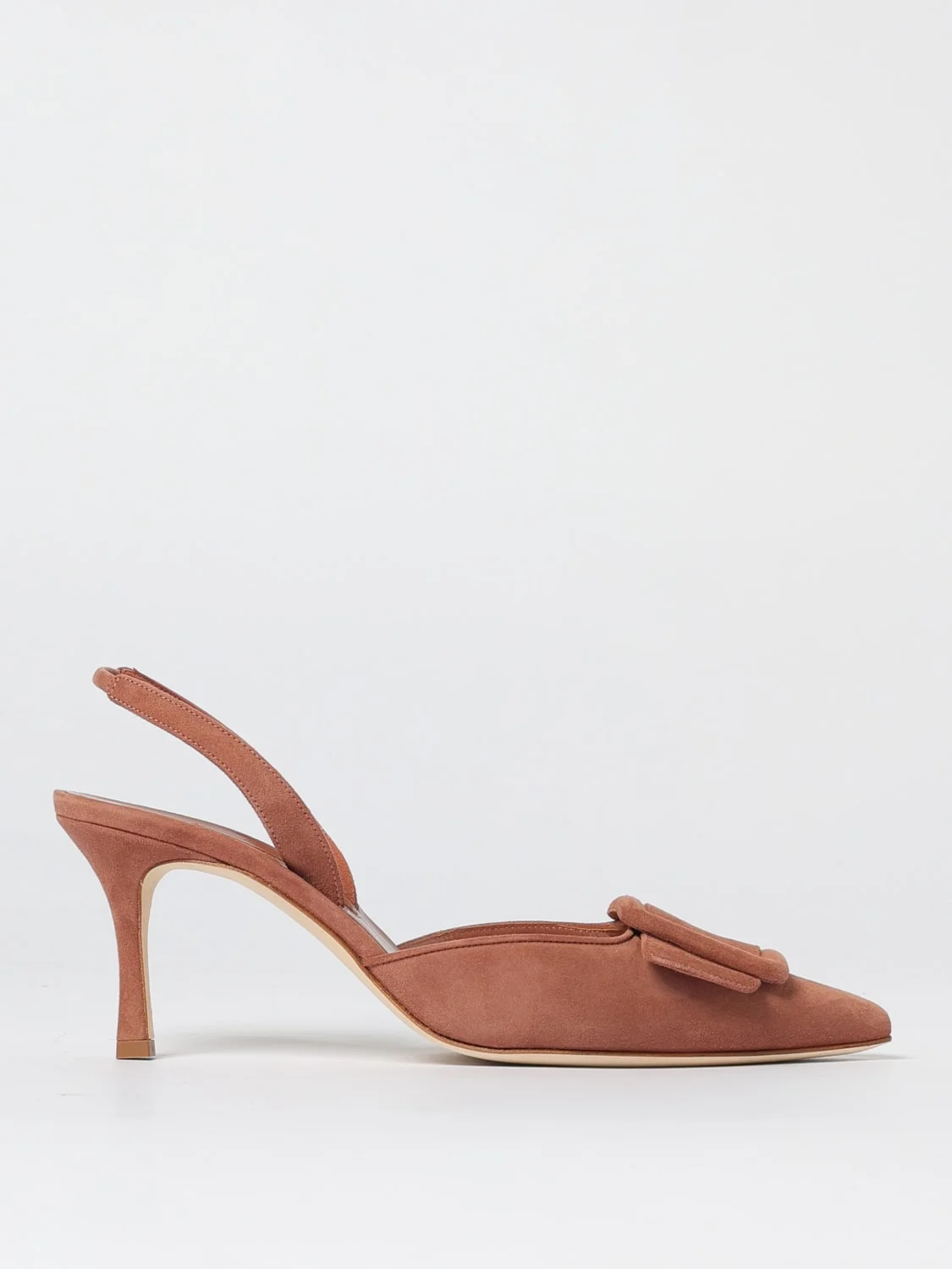 DESCRIPTION - Details: With buckle - Lining: Leather, With logo - Model: Slingback - Toe: Almond - Sole: Leather - Heel: With stretch strap , Tacco medio a stiletto - Materials: Suede calfskin - Pattern: Plain-colored DETAILS AND CARE Composition 100% KID SUEDE SIZE AND FIT Sizes Heel: 7 cm Designer code: 21901820112 2118 Giglio Code: 432550 Designer: Manolo Blahnik Collection: Manolo Blahnik Woman Category: Shoes Manolo Blahnik
