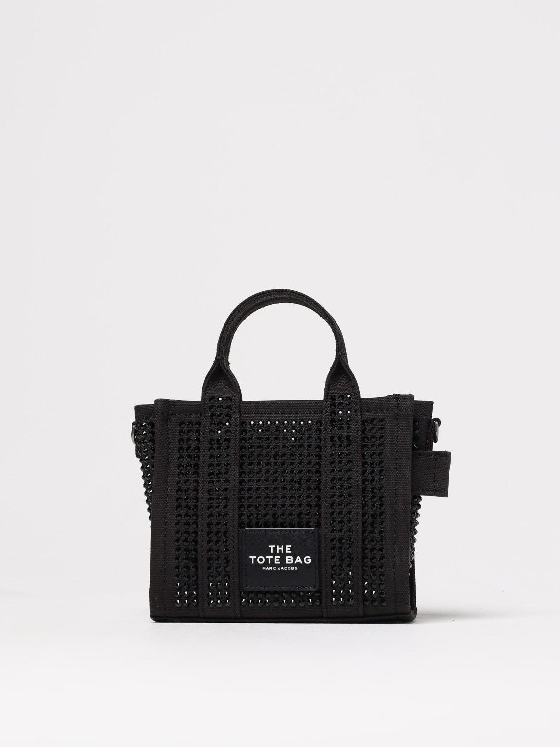 DESCRIPTION - Logo: Print - Details: With rhinestones - Model: Hand - Closure: With zip - Shape: Rectangular - Handle: Double - Lining: Canvas - Materials: Canvas - Pattern: undefined DETAILS AND CARE Composition _ SIZE AND FIT Sizes Width : 18 cm Height: 16 cm Depth: 6 cm Designer code: 2R3HCR098H01 008 Giglio Code: G49725 Designer: Marc Jacobs Collection: Marc Jacobs Woman Category: Bags Marc Jacobs