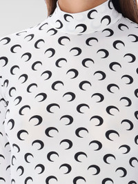 DESCRIPTION - Style: Urban-street - Neck: Turtleneck - Shoulders: Regular - Bottom: With straight hemline - Sleeves: Long sleeve tops - Materials: Jersey - Pattern: Monogram - Logo: Marine Serre Crescent Moon DETAILS AND CARE Composition 88% polyamide 12% elastane SIZE AND FIT Sizes not available Size and fit Slim fit Designer code: WTS005ACJER0001 WH00 Giglio Code: G58784 Designer: Marine Serre Collection: Marine Serre Woman Category: Clothing Marine Serre