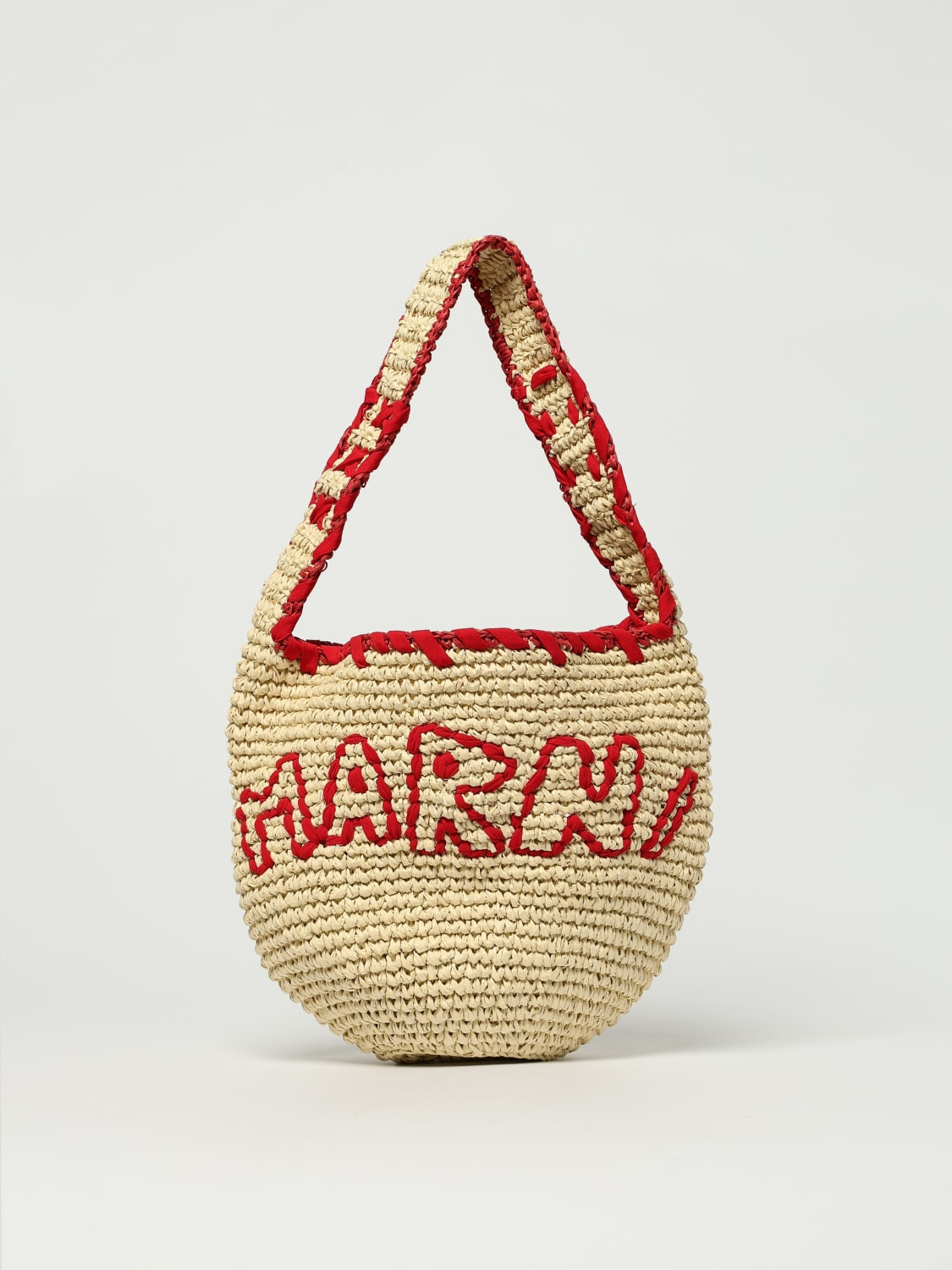 DESCRIPTION - Style: Vintage - Logo: Embroidered - Details: With embroidery - Model: Tote - Shape: Round - Handle: Top - Occasion: Morning - Materials: Raffia - Pattern: undefined DETAILS AND CARE Composition Body: 100% Paper - Application: 100% Polyeste SIZE AND FIT Sizes Width : 36 cm Height: 28 cm Depth: 18 cm Handle height: 25 cm Designer code: SBMP0257A0P8561 ZO980 Giglio Code: H16221 Designer: Marni Collection: Marni Woman Category: Bags Marni