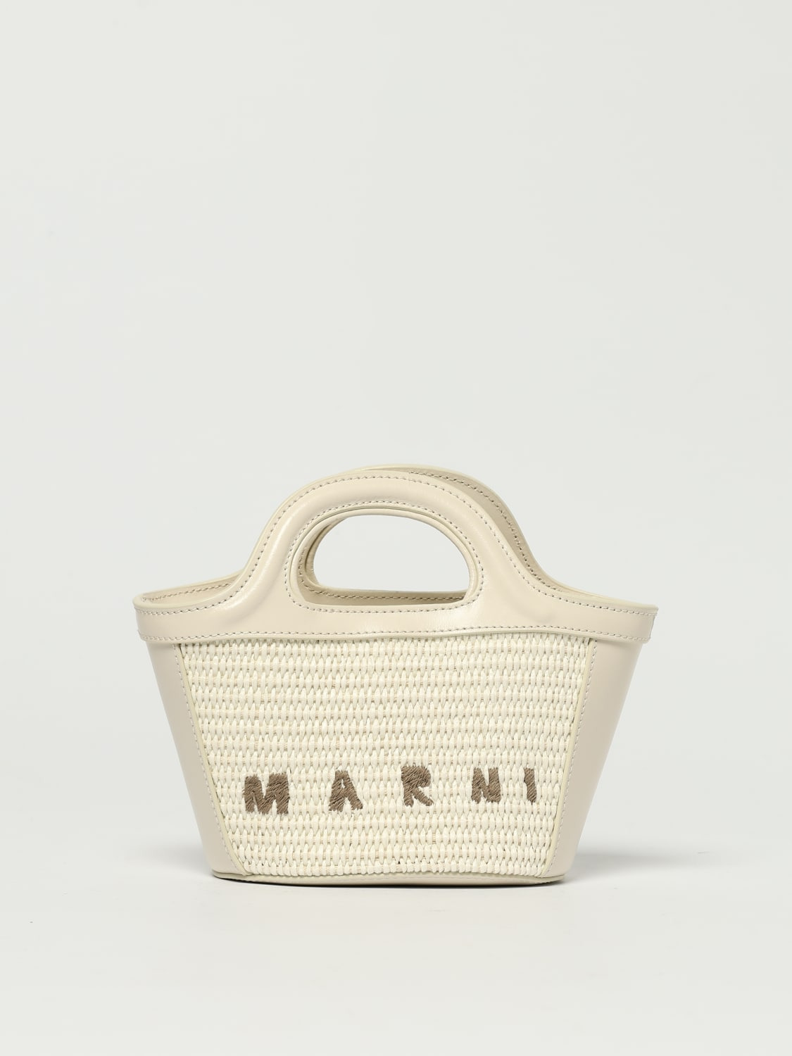 DESCRIPTION - Style: Contemporary - Logo: Embroidered - Model: Hand - Shape: Flared - Handle: Double - Shoulder strap: Leather - Lining: Cotton - Closure: With tab - Materials: Smooth calfskin - Pattern: Logo DETAILS AND CARE Composition 52% cotton 48% polyamide SIZE AND FIT Sizes Width : 15 cm Height: 11 cm Depth: 10 cm Designer code: BMMP0067Q0P3860 00W12 Giglio Code: H18189 Designer: Marni Collection: Marni Woman Category: Bags Marni