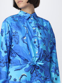 PRINTED POPLIN DRAWSTRING SHIRT DRESS