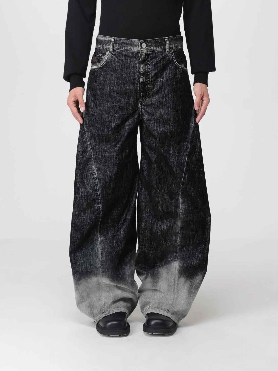 BLACK FLOCKED DENIM TWISTED JEANS