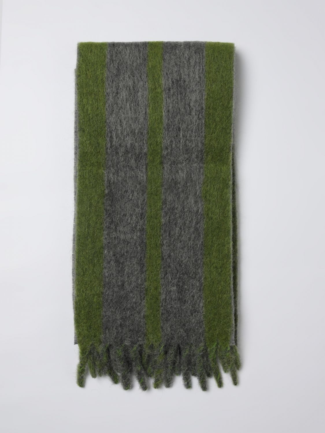 DESCRIPTION - Bottom: Fringed - Shape: Rectangular - Logo: With logo - Materials: Wool blend - Pattern: Two-tone stripes DETAILS AND CARE Composition not available SIZE AND FIT Sizes not available Designer code: SCMC0138Y0UAW054 LON63 Giglio Code: H40004 Designer: Marni Collection: Marni Woman Category: Accessories Marni