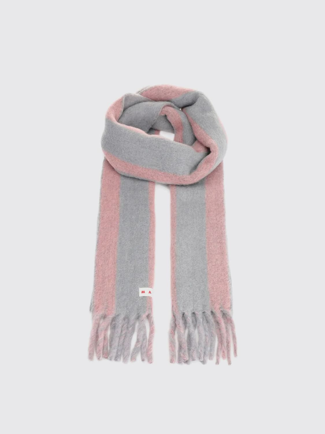 DESCRIPTION - Bottom: Fringed - Shape: Rectangular - Logo: With logo - Materials: Virgin wool - Pattern: Two-tone stripes DETAILS AND CARE Composition Wool | 50% VIRGIN WOOL 20% POLYAMIDE 15% ALPA SIZE AND FIT Sizes not available Designer code: SCMC0138Y0 LON55 Giglio Code: H18442 Designer: Marni Collection: Marni Woman Category: Accessories Marni