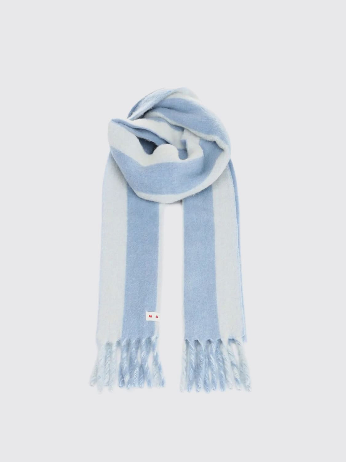 DESCRIPTION - Bottom: Fringed - Shape: Rectangular - Logo: With logo - Materials: Virgin wool - Pattern: Two-tone stripes DETAILS AND CARE Composition Wool | 50% VIRGIN WOOL 20% POLYAMIDE 15% ALPA SIZE AND FIT Sizes not available Designer code: SCMC0138Y0 LOW09 Giglio Code: H18442 Designer: Marni Collection: Marni Woman Category: Accessories Marni
