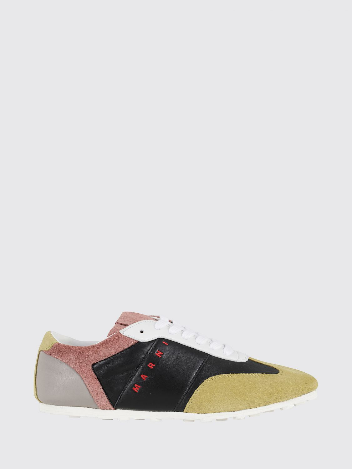 DESCRIPTION - Logo: Embroidered, Lettering - Lining: Leather, With logo - Model: Lace up - Toe: Round - Ankle: Low top - Sole: Rubber - Occasion: Morning - Materials: Smooth calfskin, Suede calfskin - Pattern: Abstract DETAILS AND CARE Composition | SIZE AND FIT Sizes not available Designer code: SNZW020400P9097 ZP008 Giglio Code: H41810 Designer: Marni Collection: Marni Woman Category: Shoes Marni