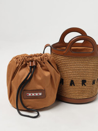 DESCRIPTION - Style: Casual - Logo: Contrasting - Lining: With removable pouch - Model: Hand, Crossbody, Bucket - Closure: With drawstrings - Shape: Flared - Shoulder strap: Leather - Materials: Raffia, Leather - Pattern: All-over logo DETAILS AND CARE Composition Body: 52% Cotton 48% Polyamide-Nylon - C SIZE AND FIT Sizes not available Designer code: SCMP0056Q1P3860 00M50 Giglio Code: 427702 Designer: Marni Collection: Marni Woman Category: Bags Marni