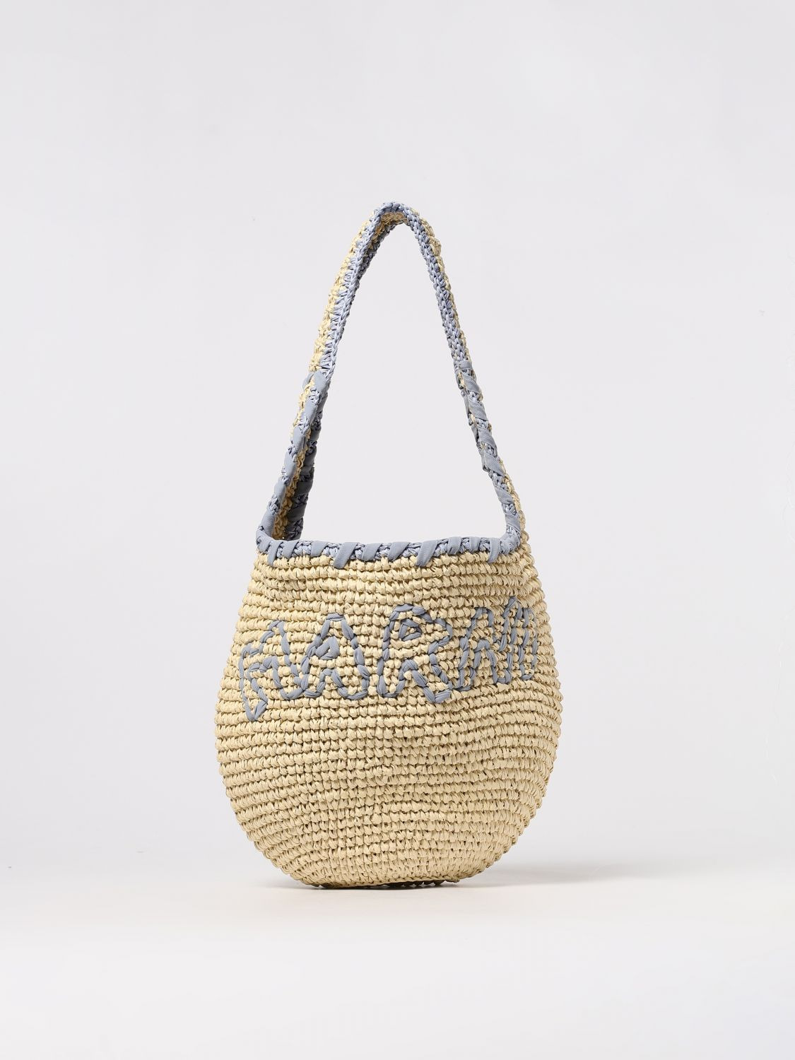 DESCRIPTION - Style: Urban-street - Logo: Embroidered - Details: With embroidery - Model: Tote - Shape: Round - Handle: Top - Occasion: Morning - Materials: Raffia - Pattern: undefined DETAILS AND CARE Composition GENERAL POLYESTER 100 - SIZE AND FIT Sizes Width : 40 cm Height: 40 cm Depth: 15 cm Handle height: 43 cm Designer code: SBMP0256A0P8561 ZO981 Giglio Code: H18618 Designer: Marni Collection: Marni Woman Category: Bags Marni