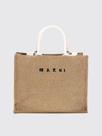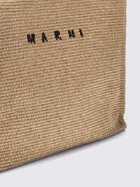 DESCRIPTION - Logo: Embroidered - Lining: Fabric - Model: Hand - Closure: With tab and press stud - Shape: Rectangular - Handle: 4 handles - Shoulder strap: Adjustable and removable - Materials: Raffia, Canvas, Cotton - Pattern: All-over logo DETAILS AND CARE Composition Body: 52% Cotton 48% Polyamide-Nylon - C SIZE AND FIT Sizes Width : 45 cm Height: 34 cm Depth: 20 cm Designer code: SHMP0078U0P3860 Z0R42 Giglio Code: 427705 Designer: Marni Collection: Marni Woman Category: Bags Marni
