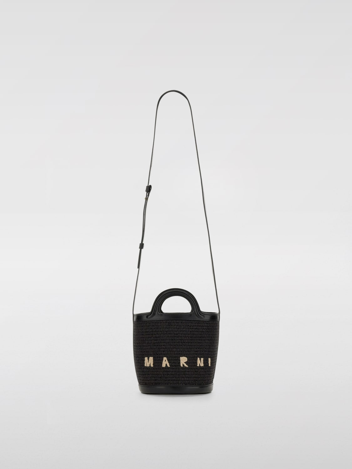 DESCRIPTION - Style: Contemporary - Logo: Embroidered - Model: Crossbody - Closure: With drawstrings - Shape: Flared - Handle: Double - Shoulder strap: Leather - Lining: Cotton - Materials: Smooth calfskin - Pattern: Logo DETAILS AND CARE Composition COTTON SIZE AND FIT Sizes Width : 17 cm Height: 18 cm Depth: 16 cm Handle height: 4 cm Designer code: SCMP0056Q1P3860 00N99 Giglio Code: H22461 Designer: Marni Collection: Marni Woman Category: Bags Marni