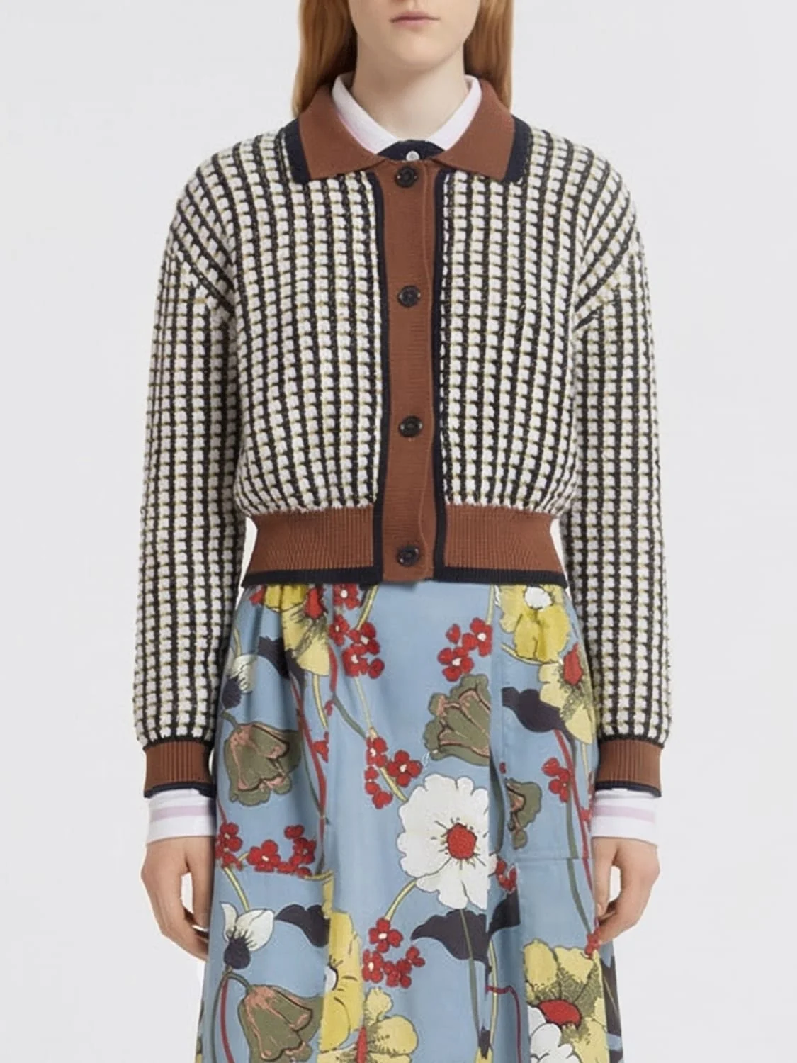 collared grid cotton knitwear