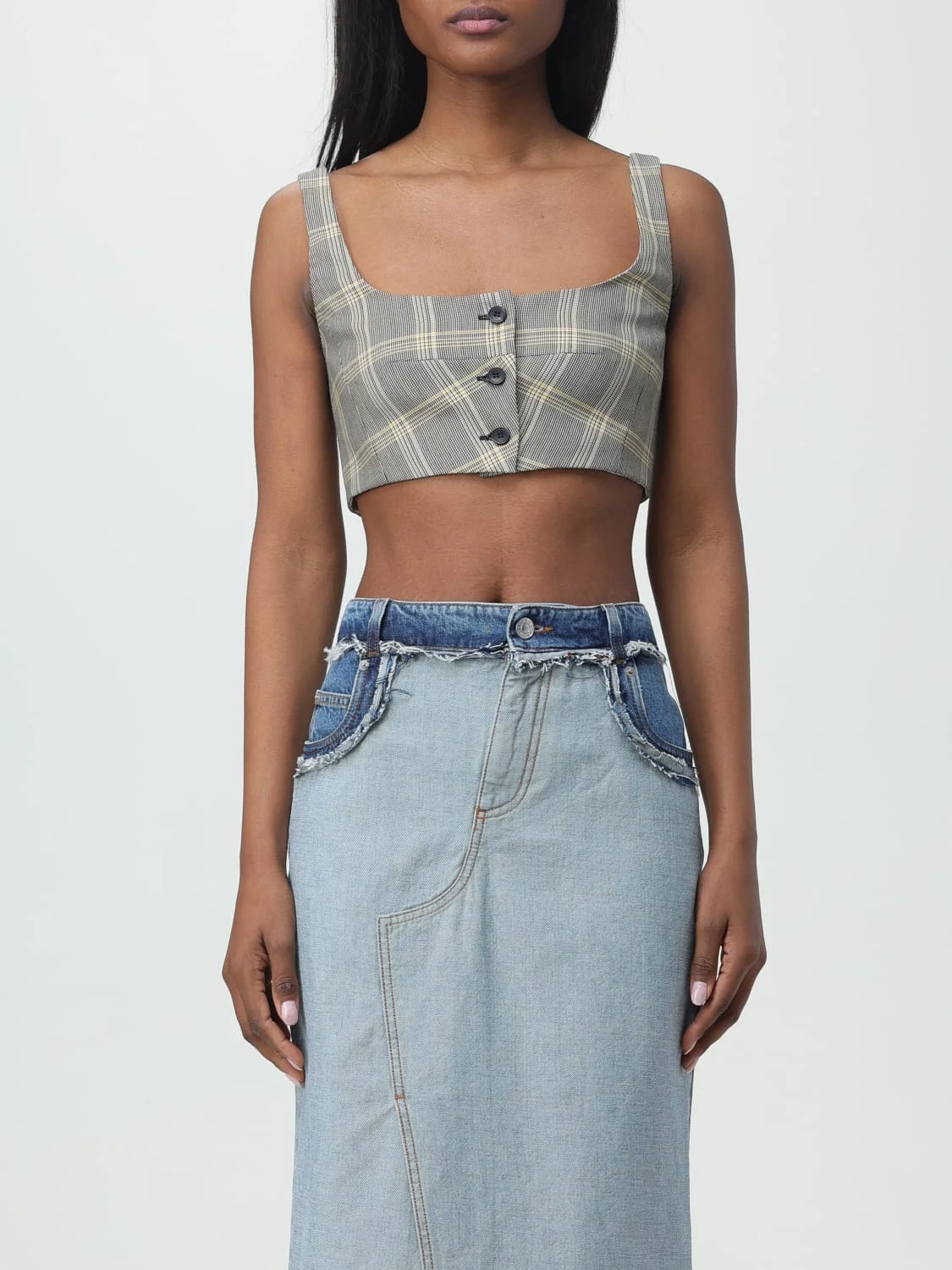 DESCRIPTION - Style: Casual - Neckline: Squared - Shoulders: Regular - Sleeves: Sleeveless - Closure: With buttons - Materials: Wool blend - Pattern: Check DETAILS AND CARE Composition 57% virgin wool, 43% polyester SIZE AND FIT Sizes not available Size and fit Cropped fita Designer code: TTMA0285U0UTWA11 CHY20 Giglio Code: F15617 Designer: Marni Collection: Marni Woman Category: Clothing Marni
