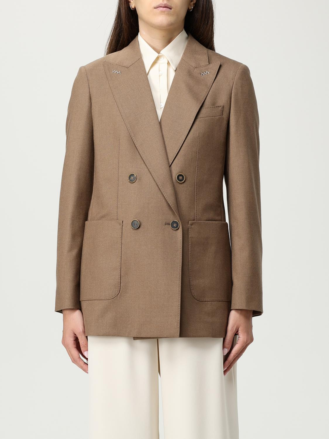 DESCRIPTION - Style: Classic - Model: Double-breasted - Neck: Peak lapels - Shoulders: Regular - Sleeves: Long - Closure: With buttons - Pockets: Patch pocket - Bottom: With straight hemline - Length: Short jackets - Materials: Cashmere - Pattern: Plain-colored DETAILS AND CARE Composition not available SIZE AND FIT Sizes not available Size and fit Regular fit Designer code: 2521046131600 005 Giglio Code: H22091 Designer: Max Mara Collection: Max Mara Woman Category: Clothing Max Mara