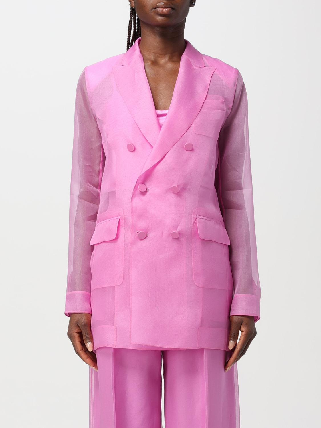 DESCRIPTION - Style: Elegant - Occasion: Ceremony and cocktail, Evening and party - Model: Double-breasted - Neck: Peak lapels - Neckline: V neckline - Shoulders: Regular - Sleeves: Long - Bottom: With straight hemline - Pockets: With flap - Closure: With fabric button - Length: Short jackets - Materials: Silk - Pattern: Plain-colored DETAILS AND CARE Composition 100% Silk SIZE AND FIT Sizes not available Size and fit Regular fit Designer code: 2411041014600 057 Giglio Code: 402368 Designer: Max Mara Collection: Max Mara Woman Category: Clothing Max Mara