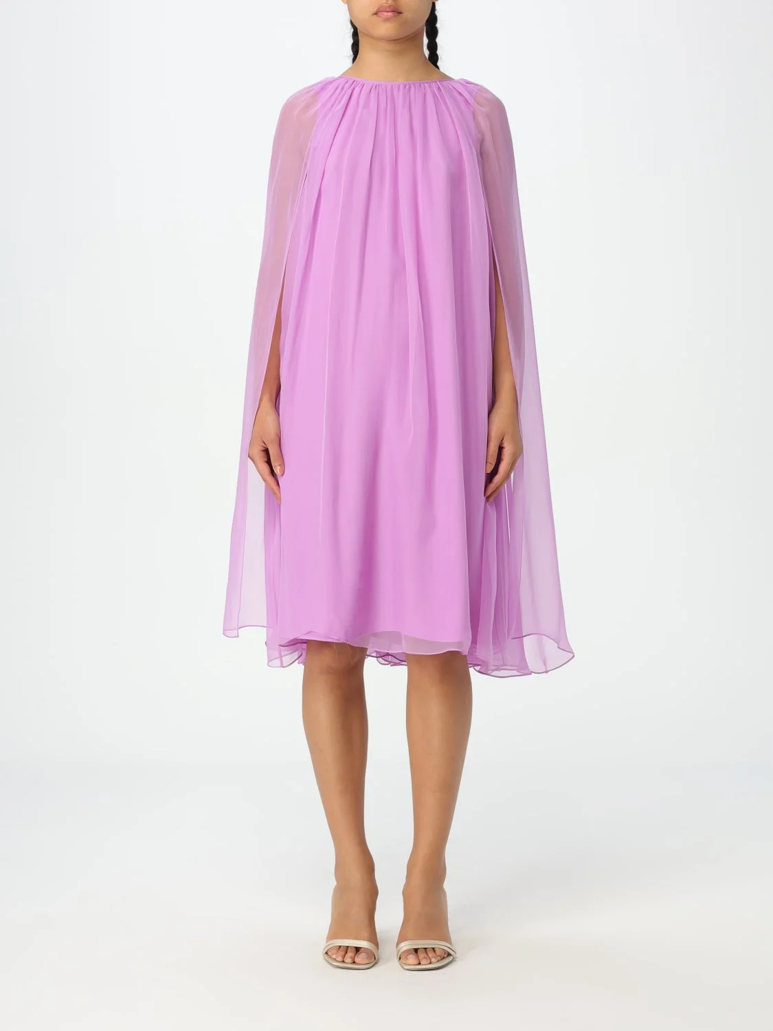 DESCRIPTION - Style: Elegant, Formal - Neckline: Crewneck - Shoulders: Regular - Bottom: With straight hemline - Length: Mini dresses - Occasion: Ceremony and cocktail dresses, Evening and party dresses - Sleeves: Long sleeve dresses - Materials: Silk - Pattern: Plain-colored DETAILS AND CARE Composition 100% Silk SIZE AND FIT Sizes not available Size and fit Regular fit Designer code: 2411221034600 028 Giglio Code: 402362 Designer: Max Mara Collection: Max Mara Woman Category: Clothing Max Mara