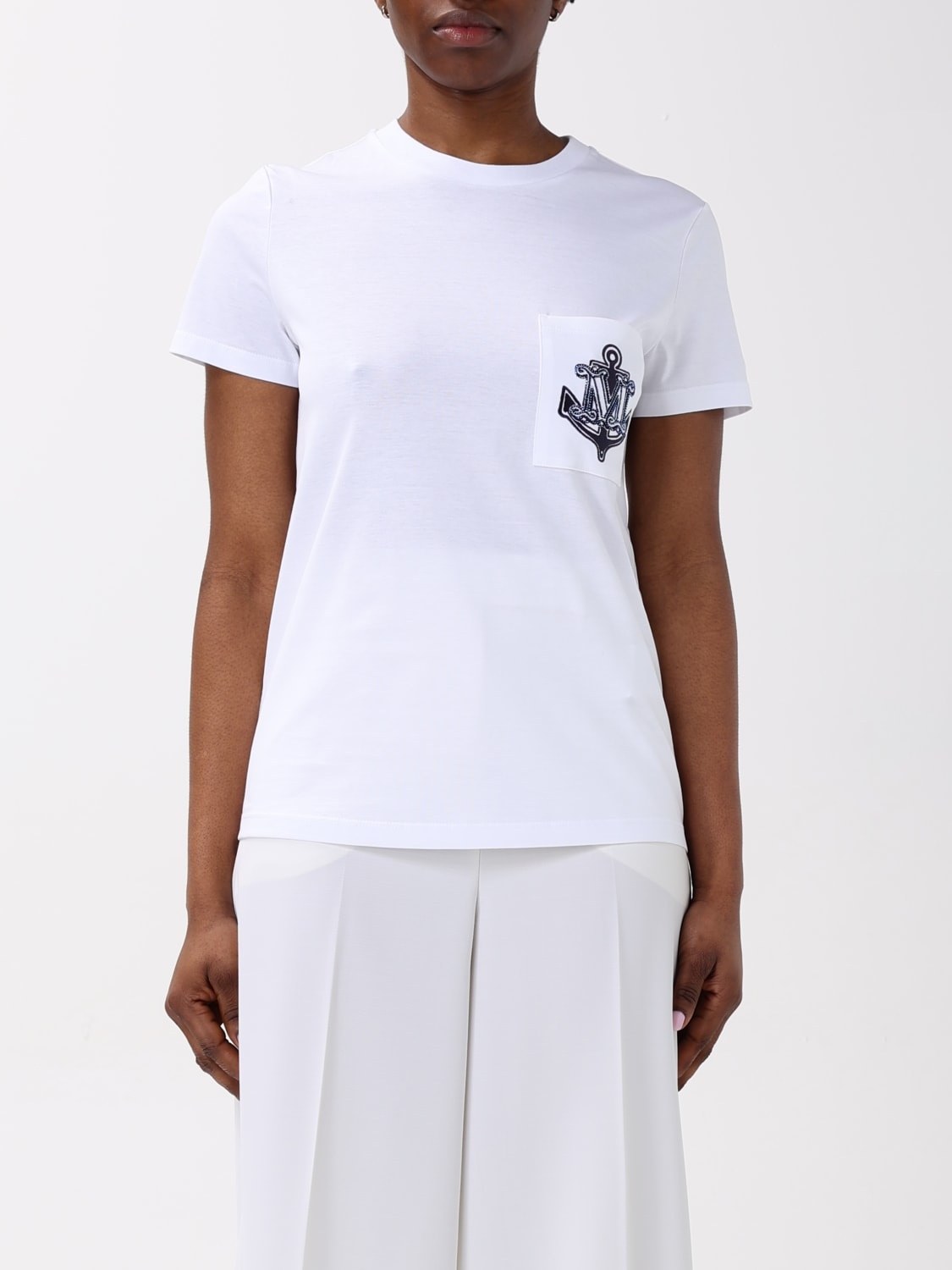 DESCRIPTION Editorial Notes Top woman Max Mara - Style: Basic, Casual - Logo: Contrasting - Neckline: Crewneck - Shoulders: Regular - Sleeves: Short - Pockets: Patch pocket - Bottom: With straight hemline - Materials: Stretch cotton - Pattern: Plain-colored, All-over logo DETAILS AND CARE Composition fabric 100% Cotton SIZE AND FIT Sizes not available Size and fit Regular fit Designer code: 2511941031600 007 Giglio Code: 426180 Designer: Max Mara Collection: Max Mara Woman Category: Clothing Max Mara