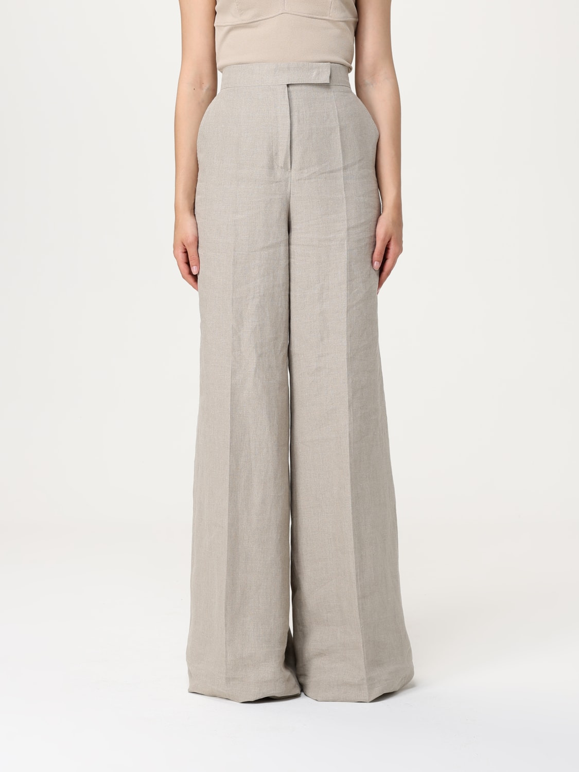 DESCRIPTION - Style: Classic - Model: Palazzo - Closure: With button and zip - Pockets: America - Waist: High waist - Bottom: With straight hemline - Materials: Linen - Pattern: Plain-colored DETAILS AND CARE Composition 100%li SIZE AND FIT Sizes not available Size and fit Regular fit Designer code: 2511131092600 001 Giglio Code: G62276 Designer: Max Mara Collection: Max Mara Woman Category: Clothing Max Mara