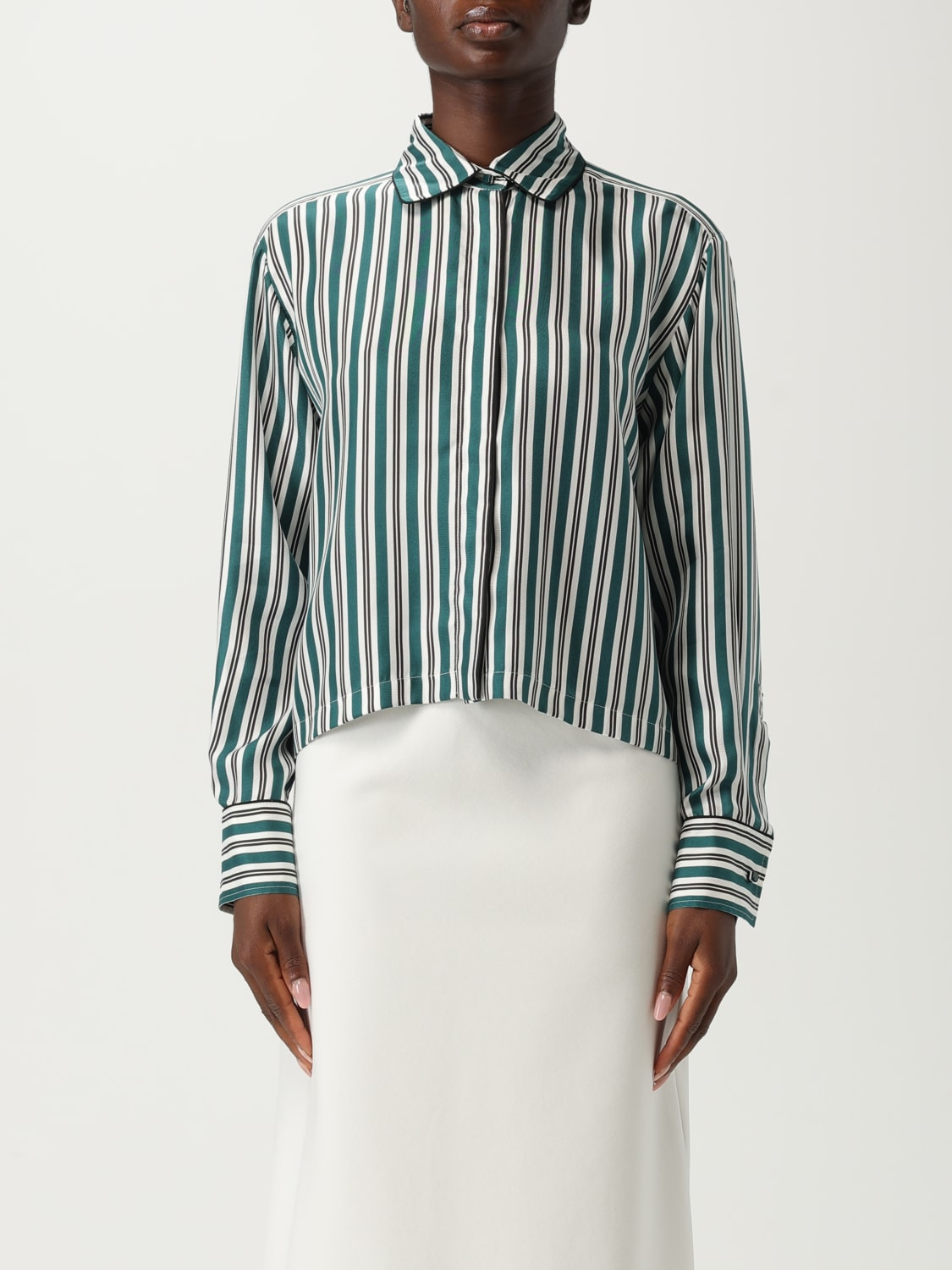 DESCRIPTION - Style: Casual - Neck: Classic - Shoulders: Regular - Closure: Concealed buttons - Bottom: With straight hemline - Sleeves: Long sleeve shirts - Materials: Silk - Pattern: Stripes DETAILS AND CARE Composition not available SIZE AND FIT Sizes not available Size and fit Regular fit Designer code: 2521116171600 001 Giglio Code: H25087 Designer: Max Mara Collection: Max Mara Woman Category: Clothing Max Mara