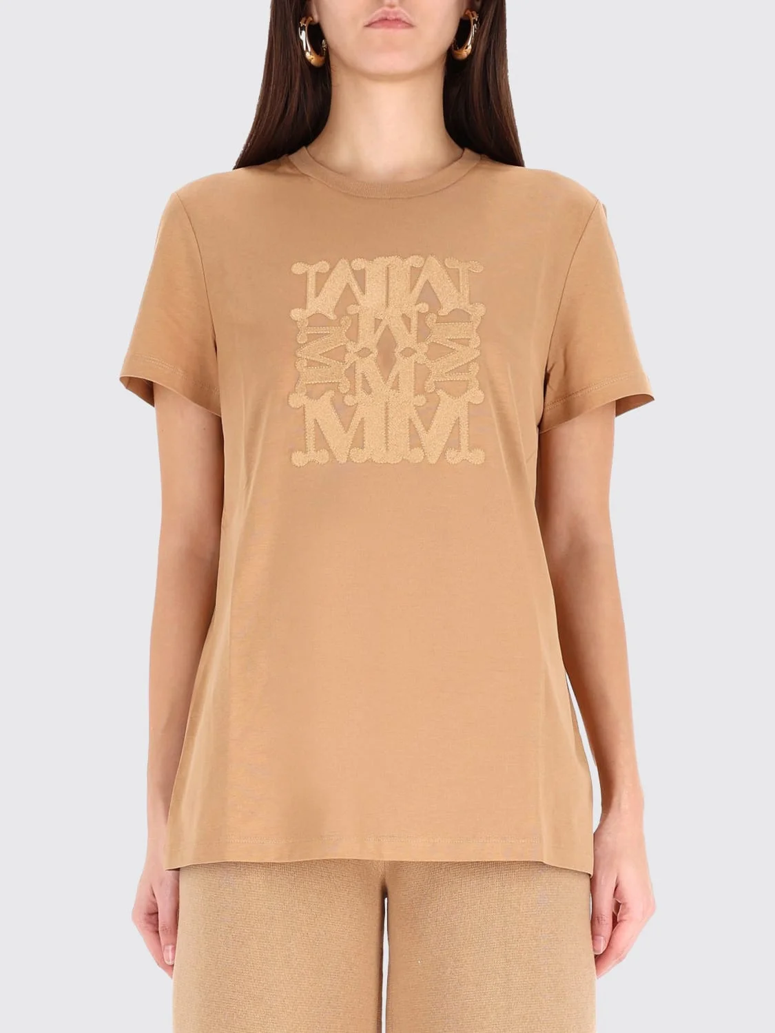 DESCRIPTION - Style: Basic, Casual, Urban-street - Logo: Tone-on-tone - Neckline: Crewneck - Shoulders: Regular - Sleeves: Short - Bottom: With straight hemline - Materials: Cotton - Pattern: Logo, Plain-colored DETAILS AND CARE Composition _100%CO SIZE AND FIT Sizes not available Size and fit Regular fit Designer code: 2521946032600 009 Giglio Code: H26949 Designer: Max Mara Collection: Clothing Max Mara Category: Clothing > T-Shirt