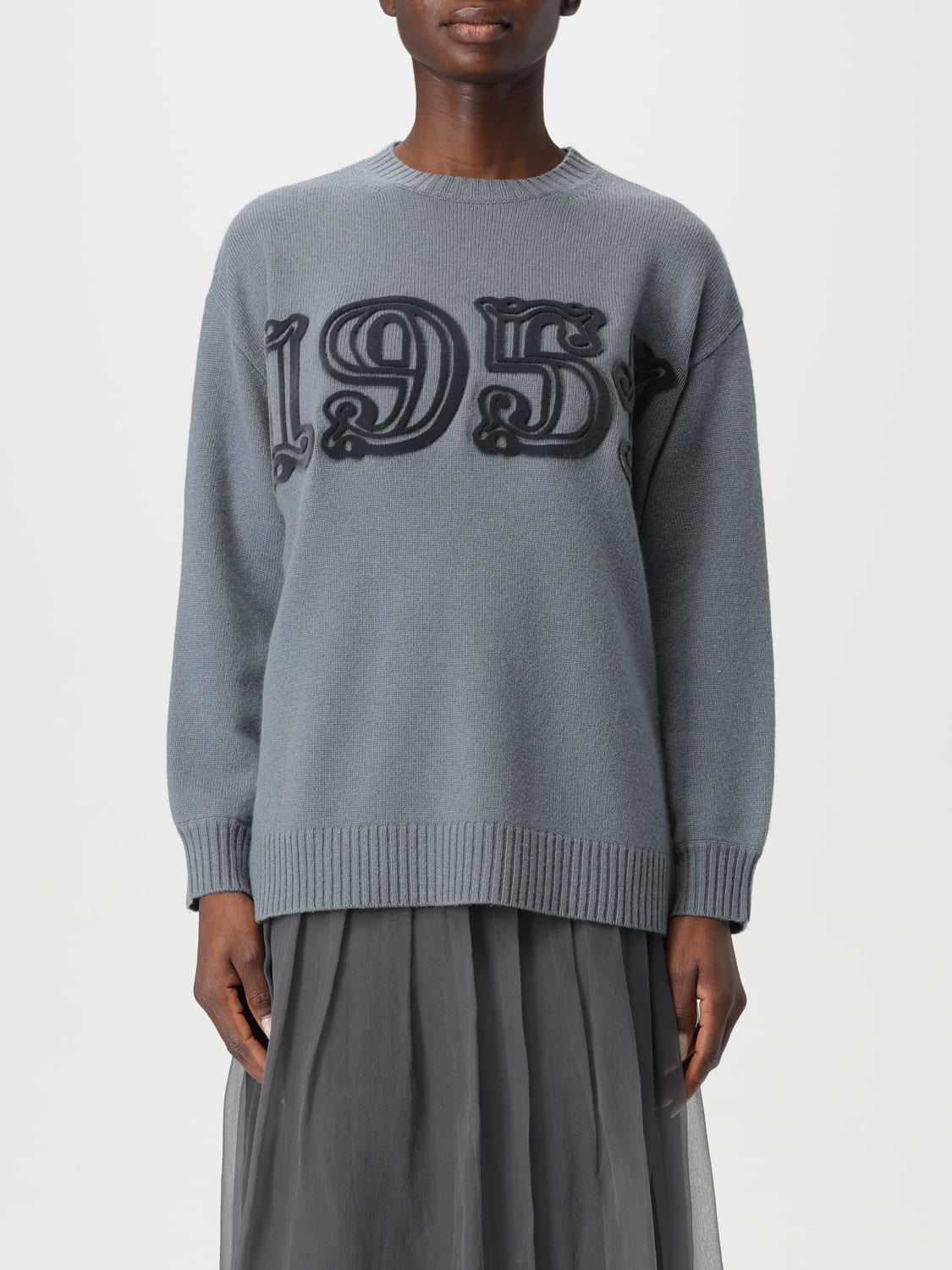 DESCRIPTION - Style: Casual - Logo: Contrasting - Neckline: Crewneck - Shoulders: Relaxed - Sleeves: Long - Bottom: With straight hemline - Materials: Cashmere, Wool - Pattern: Plain-colored, Logo DETAILS AND CARE Composition fabric 70% Wool Ovis aries aries, 30% Ca SIZE AND FIT Sizes not available Size and fit Relaxed fit Designer code: 2511361191600 046 Giglio Code: 426182 Designer: Max Mara Collection: Max Mara Woman Category: Clothing Max Mara