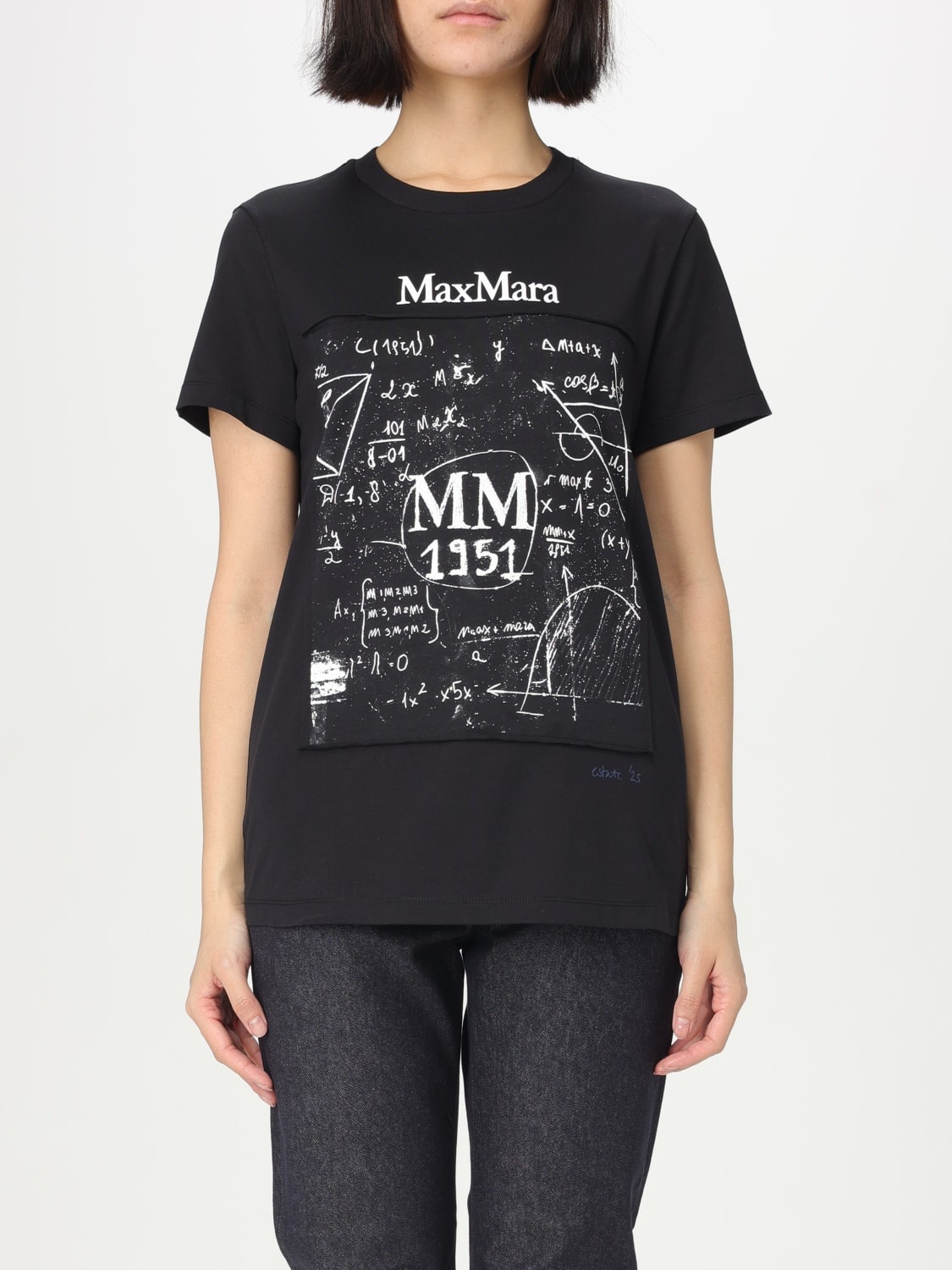 DESCRIPTION - Style: Basic, Casual - Logo: Contrasting - Neckline: Crewneck - Shoulders: Regular - Sleeves: Short - Bottom: With straight hemline - Materials: Cotton - Pattern: All-over logo DETAILS AND CARE Composition fabric 100% Cotton SIZE AND FIT Sizes not available Size and fit Regular fit Designer code: 2511941062600 020 Giglio Code: 426219 Designer: Max Mara Collection: Max Mara Woman Category: Clothing Max Mara