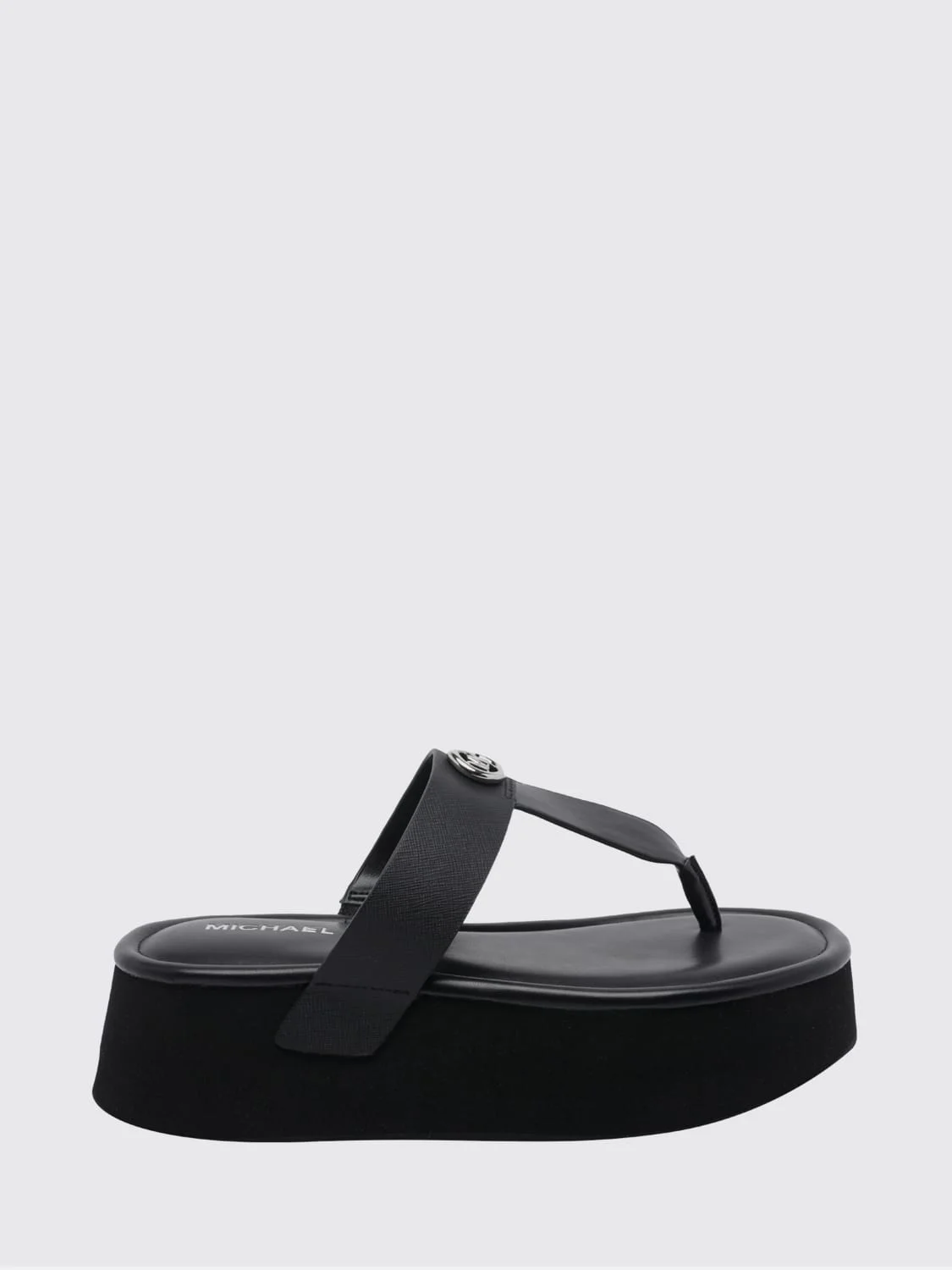 DESCRIPTION - Style: Casual - Logo: Metallic, MK monogram - Model: Flip flops, Wedge - Toe: Open, Round - Sole: Platform, Rubber - Heel: Medium heel - Lining: With logo - Occasion: Morning - Materials: Saffiano coated cotton doubled on canvas, Smooth leather - Pattern: Plain-colored DETAILS AND CARE Composition 100% pvc/rubber sole SIZE AND FIT Sizes Heel: 6 cm Designer code: 40S6KOFA1L 001 Giglio Code: I18615 Designer: Michael Kors Collection: Shoes Michael Kors Category: Shoes > Heeled sandal
