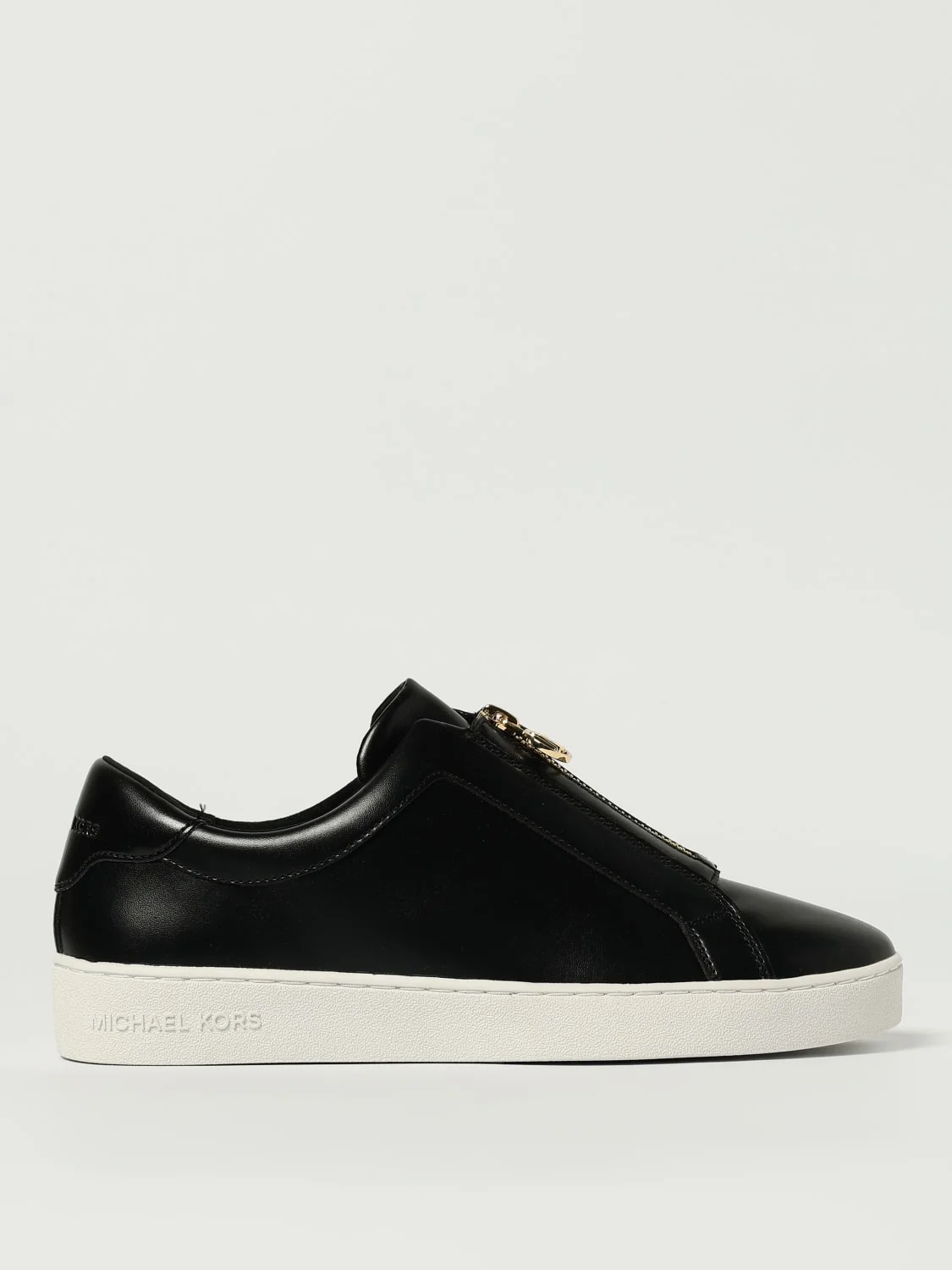 DESCRIPTION - Logo: Metallic, MK monogram - Model: Slip on - Closure: With zip - Toe: Round - Ankle: Low top, Padded - Sole: Rubber - Lining: Fabric, With logo - Materials: Smooth leather - Pattern: Plain-colored DETAILS AND CARE Composition 61% PU, 39% POLYESTE R SIZE AND FIT Sizes not available Designer code: 43R4KTFP1L 001 Giglio Code: 431927 Designer: Michael Kors Collection: Shoes Michael Kors Category: Shoes > Sneakers