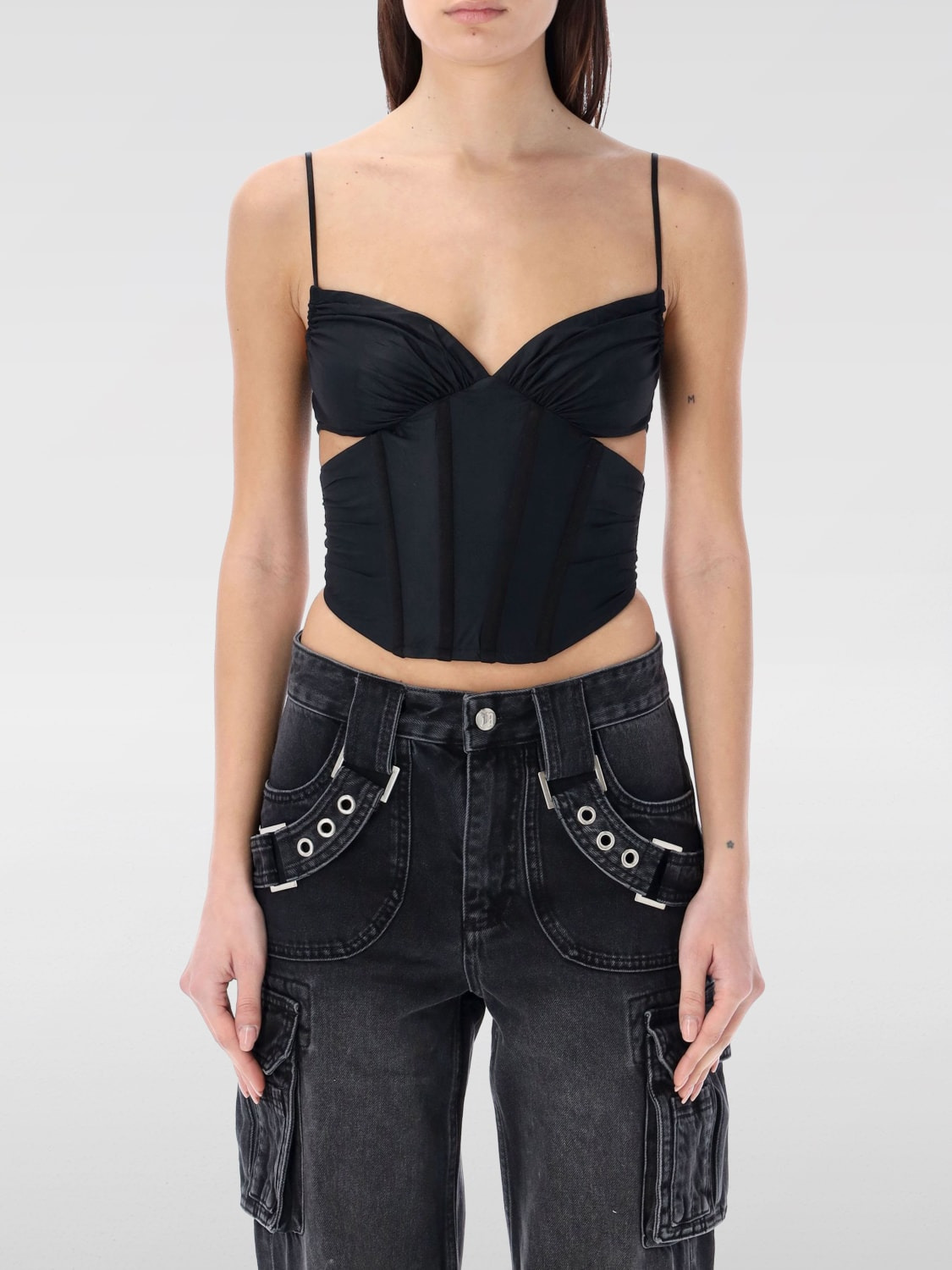 DESCRIPTION - Style: Urban-street - Neckline: V neckline - Shoulders: Regular - Closure: Back closure with zip - Bottom: With straight hemline - Model: Bustier - Sleeves: Off-the-shoulder tops - Materials: Jersey - Pattern: Plain-colored DETAILS AND CARE Composition 76% Polyamide 24% Elastane SIZE AND FIT Sizes not available Size and fit Slim fit Designer code: 230W129 BLACK Giglio Code: G57153 Designer: Misbhv Collection: Misbhv Woman Category: Clothing Misbhv