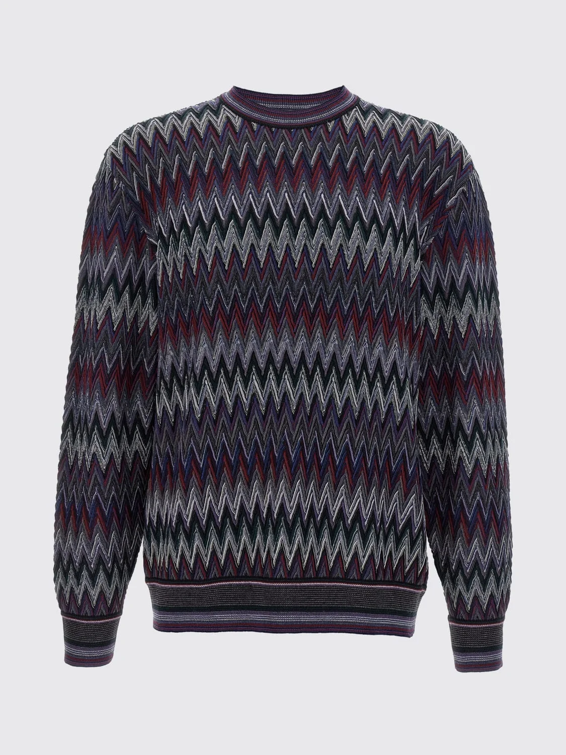 DESCRIPTION - Style: Casual - Neckline: Crewneck - Shoulders: Regular - Sleeves: Long - Bottom: With straight hemline - Materials: Wool - Pattern: Waved DETAILS AND CARE Composition 100% wool SIZE AND FIT Sizes not available Size and fit Regular fit Designer code: US25WN0EBR012Y S4173 Giglio Code: H34835 Designer: Missoni Collection: Missoni Men Category: Clothing Missoni