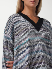 DESCRIPTION - Style: Vintage - Neckline: V neckline - Shoulders: Relaxed - Sleeves: Long - Cuffs: Ribbed - Bottom: With straight hemline - Materials: Viscose blend - Pattern: Waved DETAILS AND CARE Composition 40%vi-27%pa-22%pl-11%me SIZE AND FIT Sizes not available Size and fit Relaxed fit Designer code: DS24WN0KBC004M SM9EL Giglio Code: F94485 Designer: Missoni Collection: Missoni Woman Category: Clothing Missoni