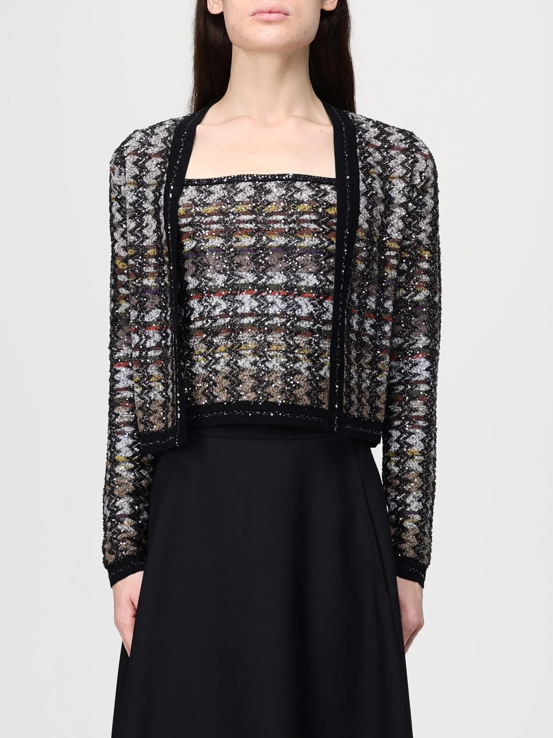 DESCRIPTION - Details: With sequins - Materials: Viscose blend - Pattern: Multicolor waves DETAILS AND CARE Composition not available SIZE AND FIT Sizes not available Designer code: DS25WM0FBK01CK SM9T1 Giglio Code: H60522 Designer: Missoni Collection: Missoni Woman Category: Clothing Missoni