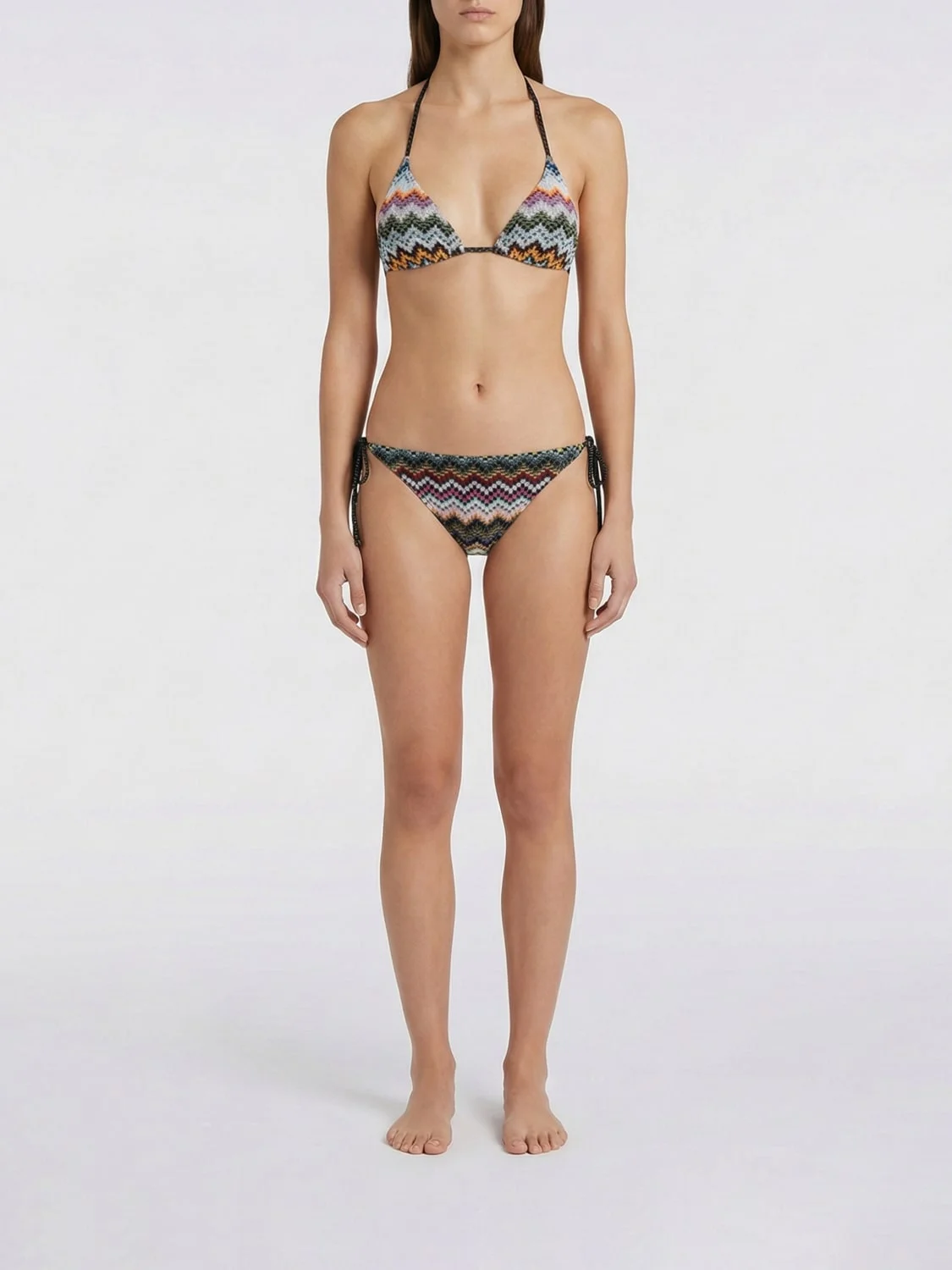 Triangle bikini in lamé viscose with pixel-effect zigzag pattern