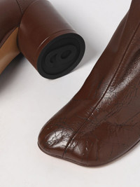DESCRIPTION - Style: Contemporary - Logo: Back, Embroidered, Maison Margiela White Stitch - Lining: With imprinted logo - Closure: Side closure with zip - Shaft: Low - Sole: Leather - Toe: Asymmetric, Round - General: Usured effect - Model: Effetto usurato - Heel: Tacco cilindrico medio - Materials: Aged leather, Nappa leather - Pattern: Bicolor DETAILS AND CARE Composition 100% calf leather SIZE AND FIT Sizes Heel: 7,5 cm Designer code: S66WU0131P7439 HB099 Giglio Code: H41754 Designer: Mm6 Maison Margiela Collection: Mm6 Maison Margiela Woman Category: Shoes Mm6 Maison Margiela