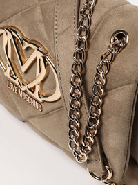 DESCRIPTION - Style: Sporty - Logo: Metallic - Model: Shoulder - Closure: With button flap - Shape: Rectangular - Handle: Metal mesh - Materials: Velvet - Pattern: Logo DETAILS AND CARE Composition 82%PL18%EA SIZE AND FIT Sizes Width : 23 cm Height: 16 cm Depth: 7 cm Designer code: JC4314PP0NKE0 105 Giglio Code: H39315 Designer: Love Moschino Collection: Love Moschino Woman Category: Bags Love Moschino
