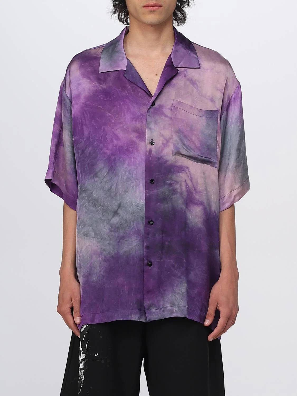 Descrizione - Casual style - Relaxed fit - Viscose - All-over tie-dye motif - Bowling collar - Dropped shoulders - Short sleeves - Button closure - Patch pocket applied - Contrasting back logo print - "Never look back, it's all ahead" print on the back in contrasting colour - Straight hem DETAILS AND CARE Composition not available SIZE AND FIT Sizes not available Designer code: 3440ME16X237014 97 Giglio Code: E32848 Designer: MSGM Collection: MSGM Men Category: Clothing MSGM