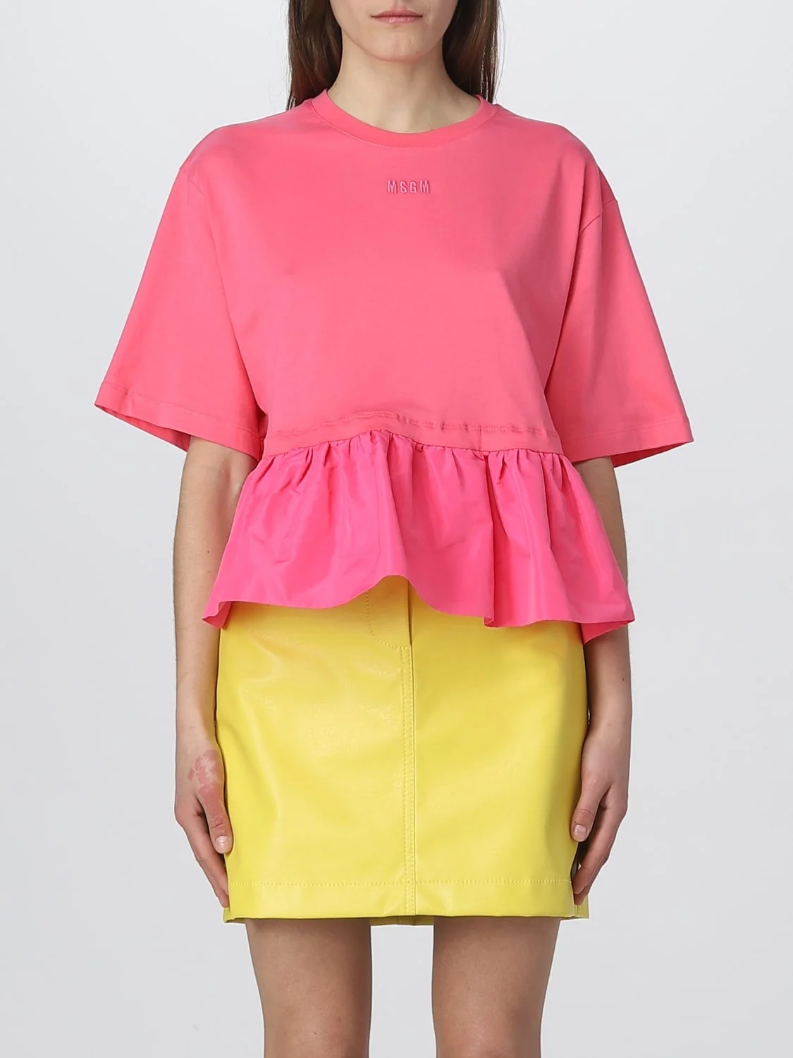 Descrizione - Casual style - Loose fit - Cotton - Embroidered taffeta flounce - Round neckline - Dropped shoulders - Short sleeves - Embroidered MSGM logo DETAILS AND CARE Composition 100% cotone SIZE AND FIT Sizes not available Designer code: MDM173237002 14 Giglio Code: E04356 Designer: MSGM Collection: MSGM Woman Category: Clothing MSGM