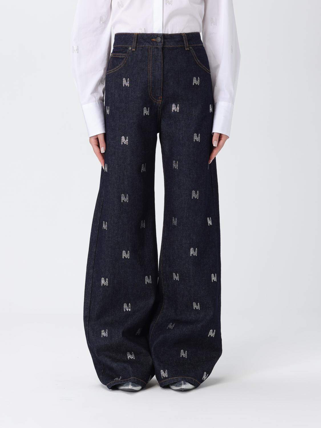 DESCRIPTION - Style: Classic - Logo: Rhinestone - Pockets: 5-pocket - Waist: High waist - Bottom: With straight hemline - Closure: With button and zip - Materials: Denim - Pattern: Monogram DETAILS AND CARE Composition 100% Cotone SIZE AND FIT Sizes not available Size and fit Narrow leg Designer code: 3941MDP240X257756 89 Giglio Code: H35019 Designer: MSGM Collection: MSGM Woman Category: Clothing MSGM