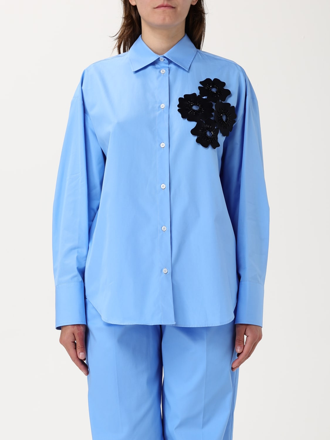 Light blue poplin shirt with floral applications