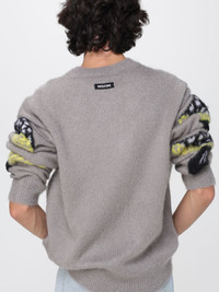Gray brushed mohair sweater with "Fantastic Mushroom" jacquard pattern