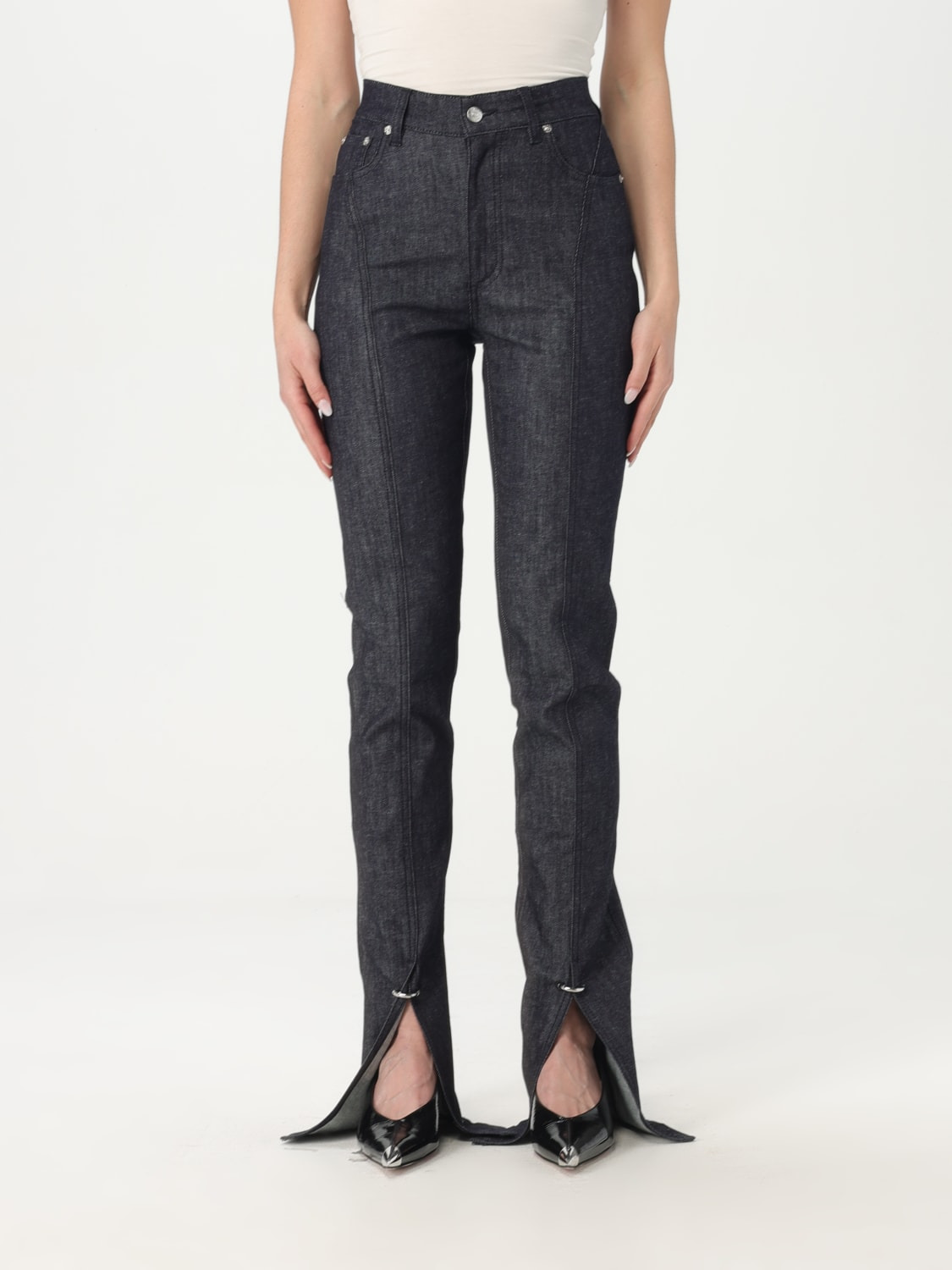 DESCRIPTION - Style: Urban-street - Pockets: 5-pocket - Waist: High waist - Bottom: With front slit - Closure: With button and zip - Materials: Cotton denim - Pattern: Plain-colored DETAILS AND CARE Composition not available SIZE AND FIT Sizes not available Size and fit Slim fit Designer code: 25P6PA04962013 RD600 Giglio Code: G52945 Designer: Mugler Collection: Mugler Woman Category: Clothing Mugler
