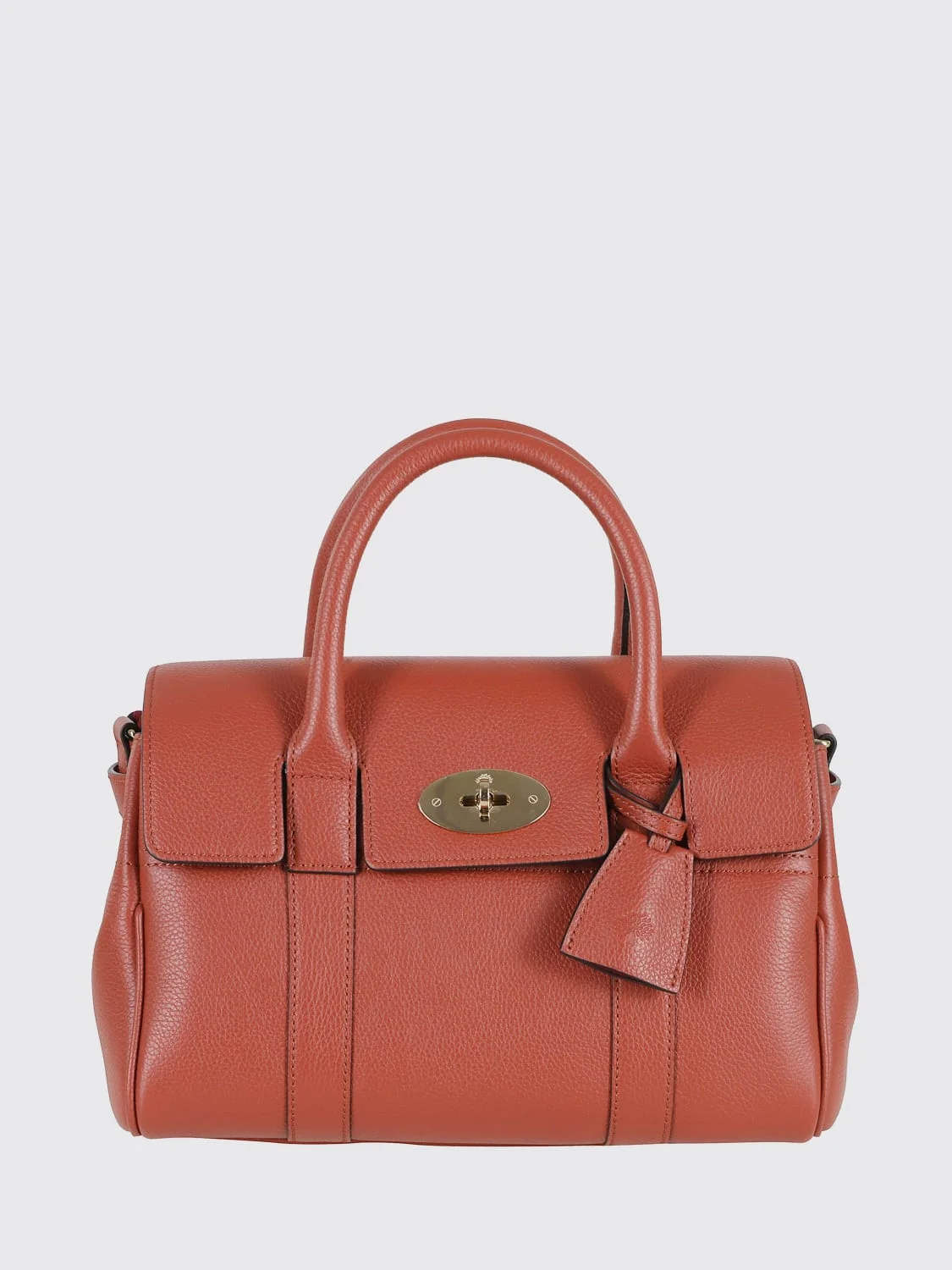 DESCRIPTION - Style: Classic - Logo: Engraved - Details: With ribbons - Model: Hand - Closure: With metal interlocking mechanism - Shape: Flared - Handle: Double - Shoulder strap: Adjustable and removable - Materials: Grained calfskin - Pattern: Plain-colored DETAILS AND CARE Composition 100% calf leather SIZE AND FIT Sizes Width : 27 cm Height: 17 cm Depth: 16 cm Designer code: HH9216205 L190 Giglio Code: H80089 Designer: Mulberry Collection: Mulberry Woman Category: Bags Mulberry