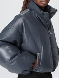 DESCRIPTION - Style: Underground - Neck: High - Shoulders: Relaxed - Sleeves: Long - Cuffs: Stretch - Closure: With zip - Pockets: Slit pocket - Bottom: With straight hemline - Sustainable: Made with recycled materials - Model: Padded - Length: Short jackets - Materials: Synthetic leather - Pattern: Plain-colored DETAILS AND CARE Composition Polyurethane | Shell: Base: 100% POLYESTER (R Wash and Care Dry clean SIZE AND FIT Sizes not available Size and fit Cropped fita Designer code: NW25PFJK01655 STEEL BLUE Giglio Code: H30620 Designer: Nanushka Collection: Nanushka Woman Category: Clothing Nanushka