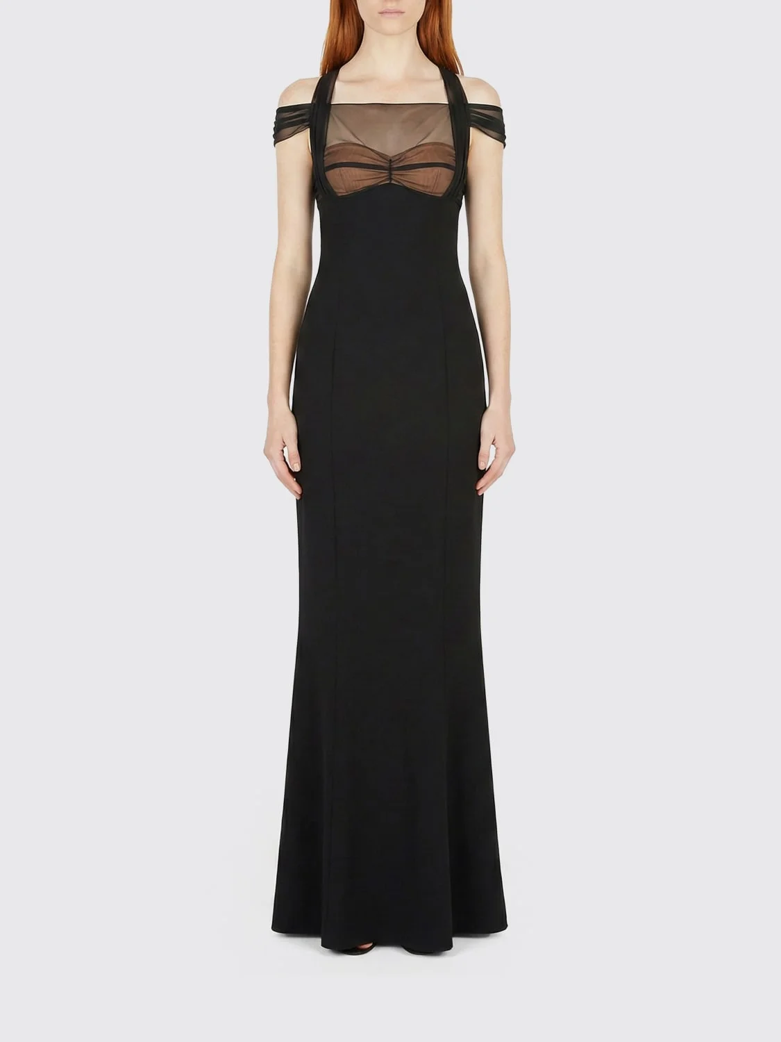 DESCRIPTION - Style: Elegant - Model: Sheath - Neckline: Balconette - Shoulders: With crossed shoulder pads - Bottom: With straight hemline - Length: Long dresses - Occasion: Ceremony and cocktail dresses, Evening and party dresses - Sleeves: Off-the-shoulder dresses - Materials: Tulle, Viscose - Pattern: Plain-colored DETAILS AND CARE Composition 83% viscose 12% polyamide 5% elastane SIZE AND FIT Sizes not available Size and fit Slim fit Designer code: NDDR3001002100 BLACK Giglio Code: H96948 Designer: Nensi Dojaka Collection: Nensi Dojaka Woman Category: Clothing Nensi Dojaka