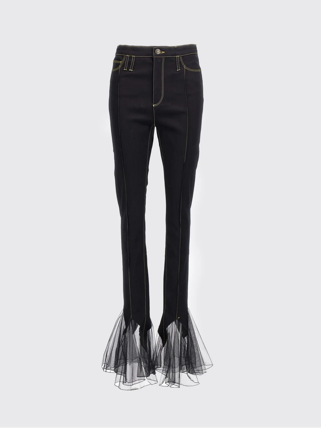 Tulle-Trimmed Stretch High-Rise Skinny Jeans black