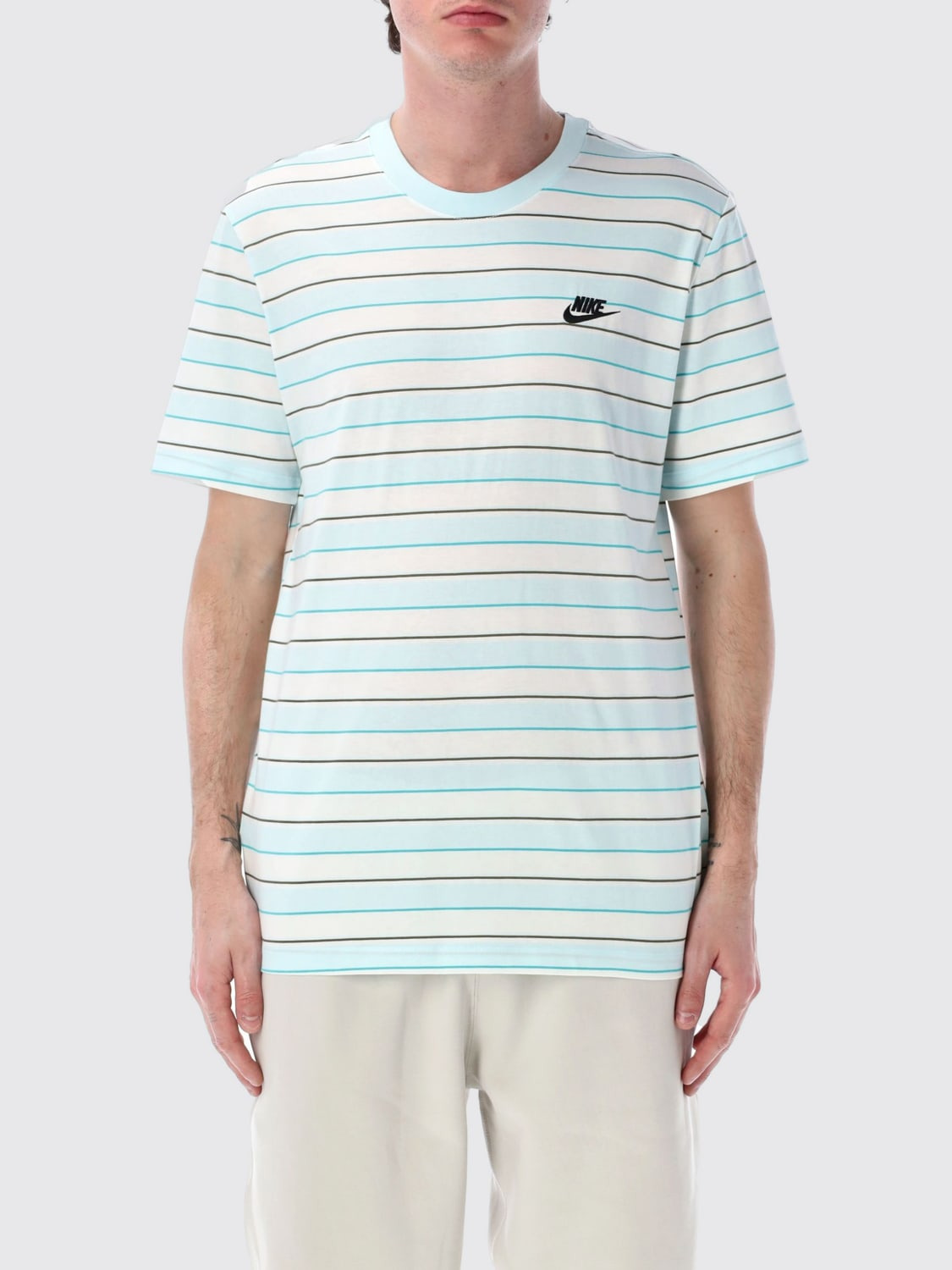 DESCRIPTION - Style: Casual - Logo: Contrasting - Neckline: Crewneck - Shoulders: Relaxed - Sleeves: Short - Bottom: With straight hemline - Materials: Cotton - Pattern: Stripes DETAILS AND CARE Composition 100% Cotton SIZE AND FIT Sizes not available Size and fit Regular fit Designer code: HJ0550 476 Giglio Code: G96532 Designer: Nike Collection: Nike Men Category: Clothing Nike