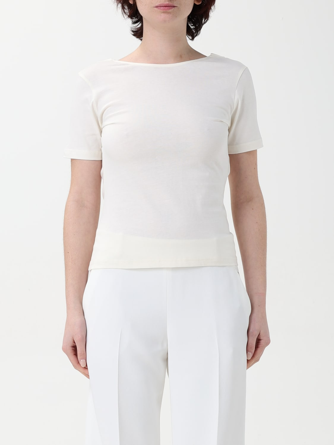 DESCRIPTION - Style: Basic - Neckline: Back triangle - Shoulders: Regular - Sleeves: Short - Bottom: With straight hemline - Materials: Cotton - Pattern: Plain-colored DETAILS AND CARE Composition not available SIZE AND FIT Sizes not available Size and fit Regular fit Designer code: 25PJTO029CO1094 U1230 Giglio Code: G63158 Designer: Nina Ricci Collection: Nina Ricci Woman Category: Clothing Nina Ricci