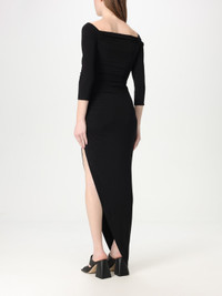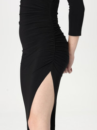 DESCRIPTION - Style: Contemporary - Neckline: V neckline - Shoulders: Regular - Bottom: With side slit - Model: Asymmetric - Length: Long dresses - Occasion: Evening and party dresses - Sleeves: Long sleeve dresses - Materials: Viscose - Pattern: Plain-colored DETAILS AND CARE Composition Polyester | 95% POLYESTER 5% ELASTANE SIZE AND FIT Sizes not available Size and fit Regular fit Designer code: KK4243PLG98001 BLACK Giglio Code: G59540 Designer: Norma Kamali Collection: Norma Kamali Woman Category: Clothing Norma Kamali